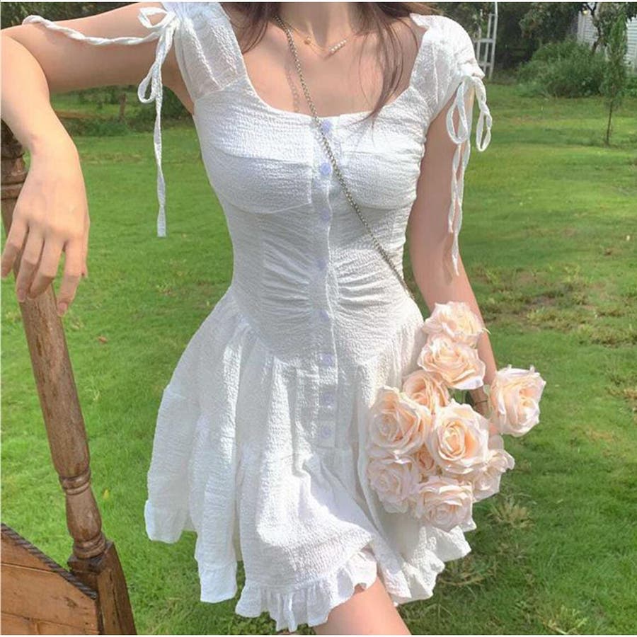 ウエストを引き締めるデザインが女性の曲線を強調し、ミニ丈のスカートが美しい脚を演出します。