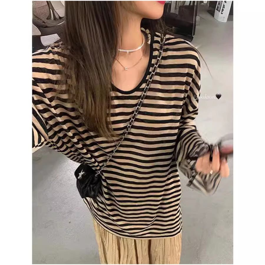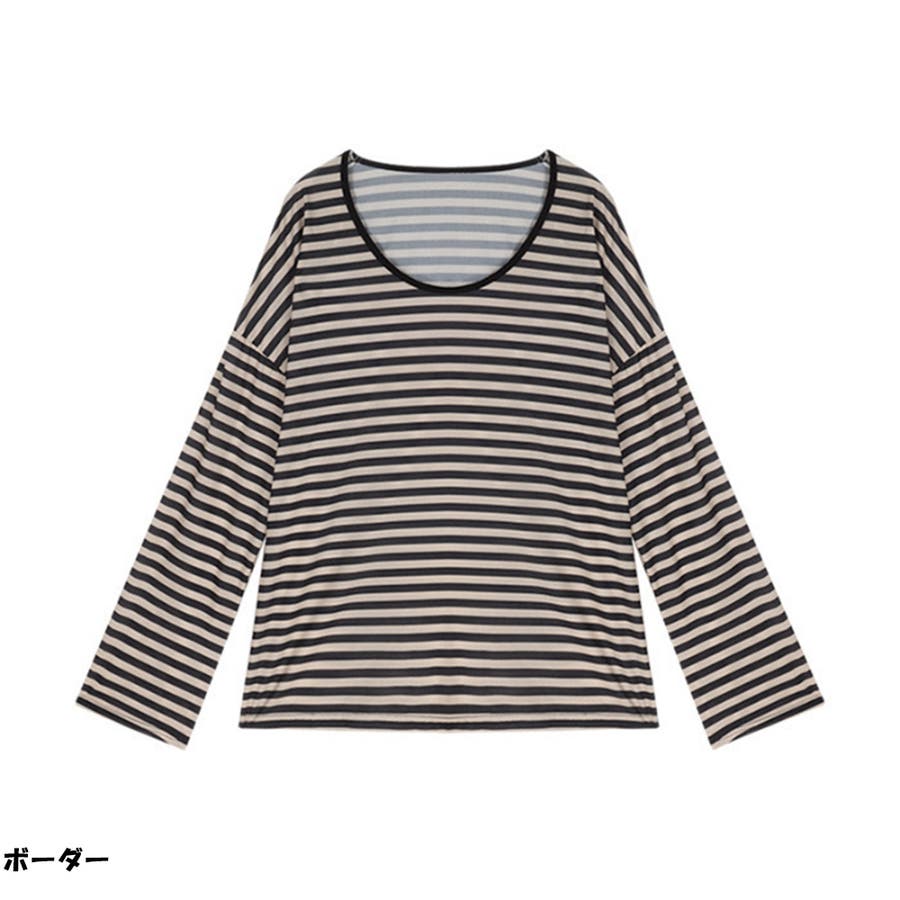 ボーダーTシャツ 長袖Tシャツ ビッグシルエット ゆったり カジュアル 韓国風