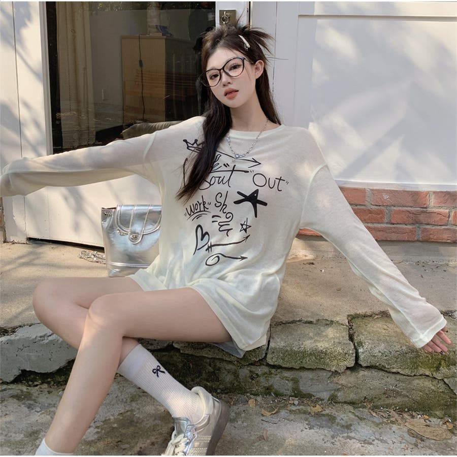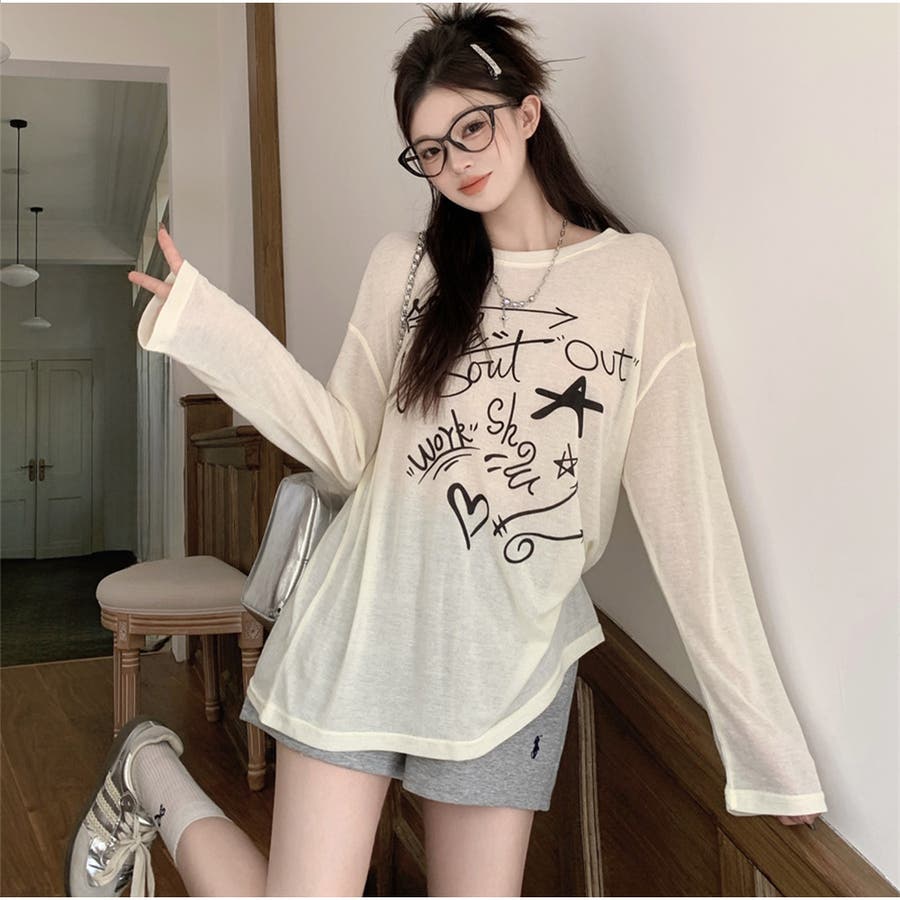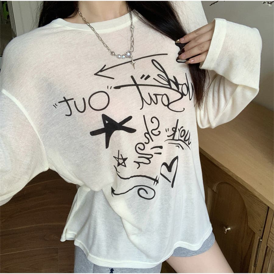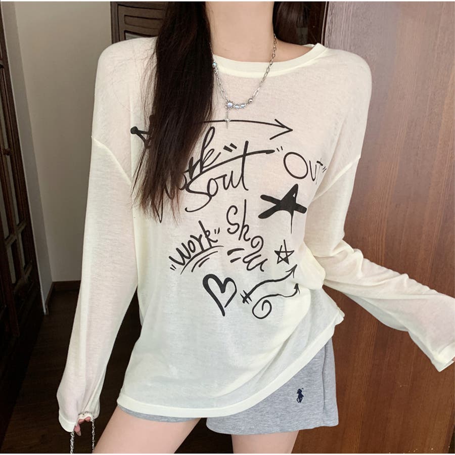 長袖Tシャツ ロゴプリント ゆったり韓国 カジュアル