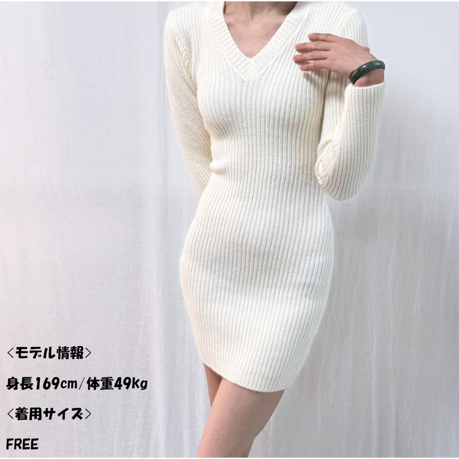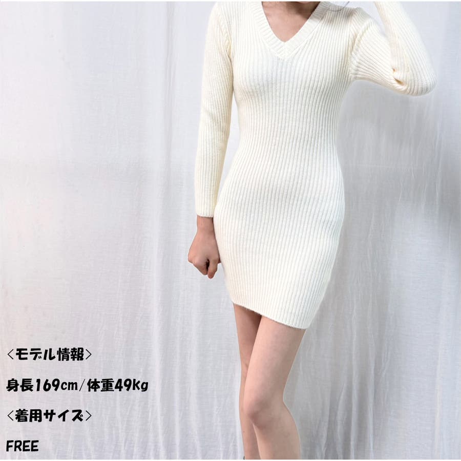 ミニワンピース ニットワンピ Vネック長袖 セクシー