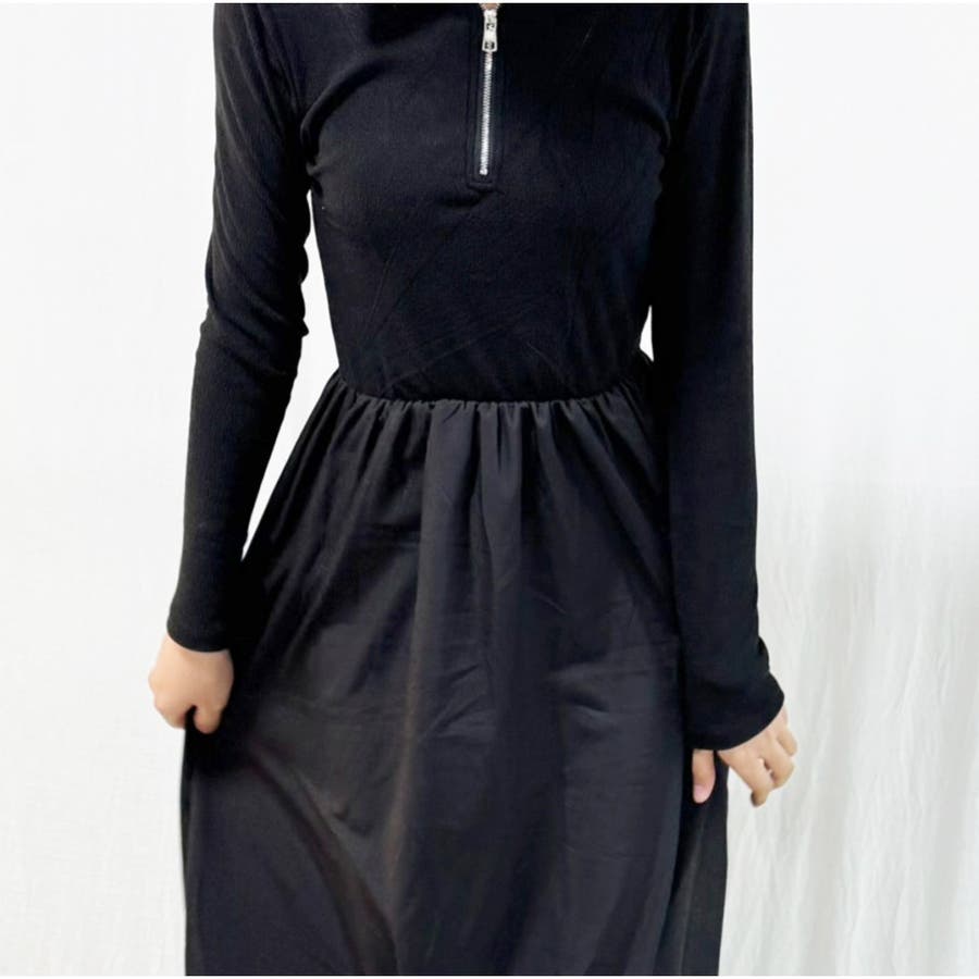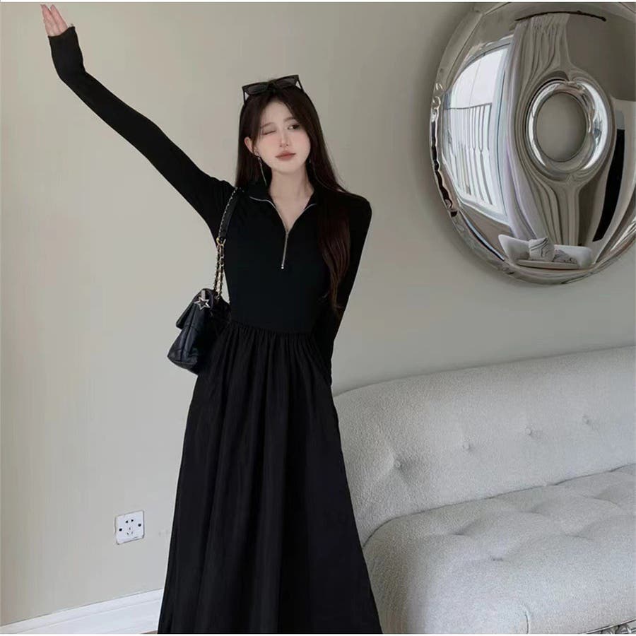 ジップを開けて、深Vネックワンピースとして、違った雰囲気を楽しめるワンピースです。