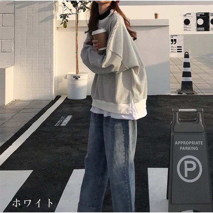 長袖カジュアルパーカー 重ね風 ボーダー柄
