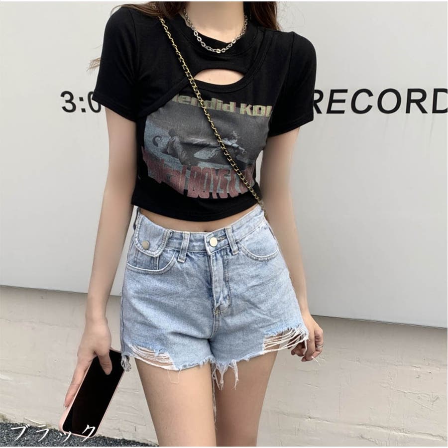 ショート丈Tシャツ ロゴプリント ミニ丈へそ見え半袖 ロゴTシャツ トップス