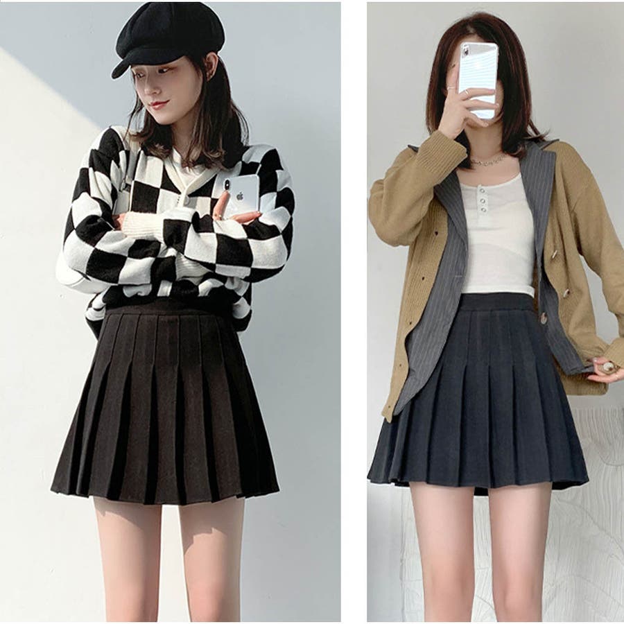 短めな丈感と自然なAラインのシルエットで足が長くてスリムに見せてくれるプリーツミニスカート