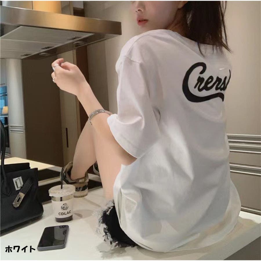 半袖Tシャツ 前後ロゴプリント 夏 綿Tシャツ レディース韓国