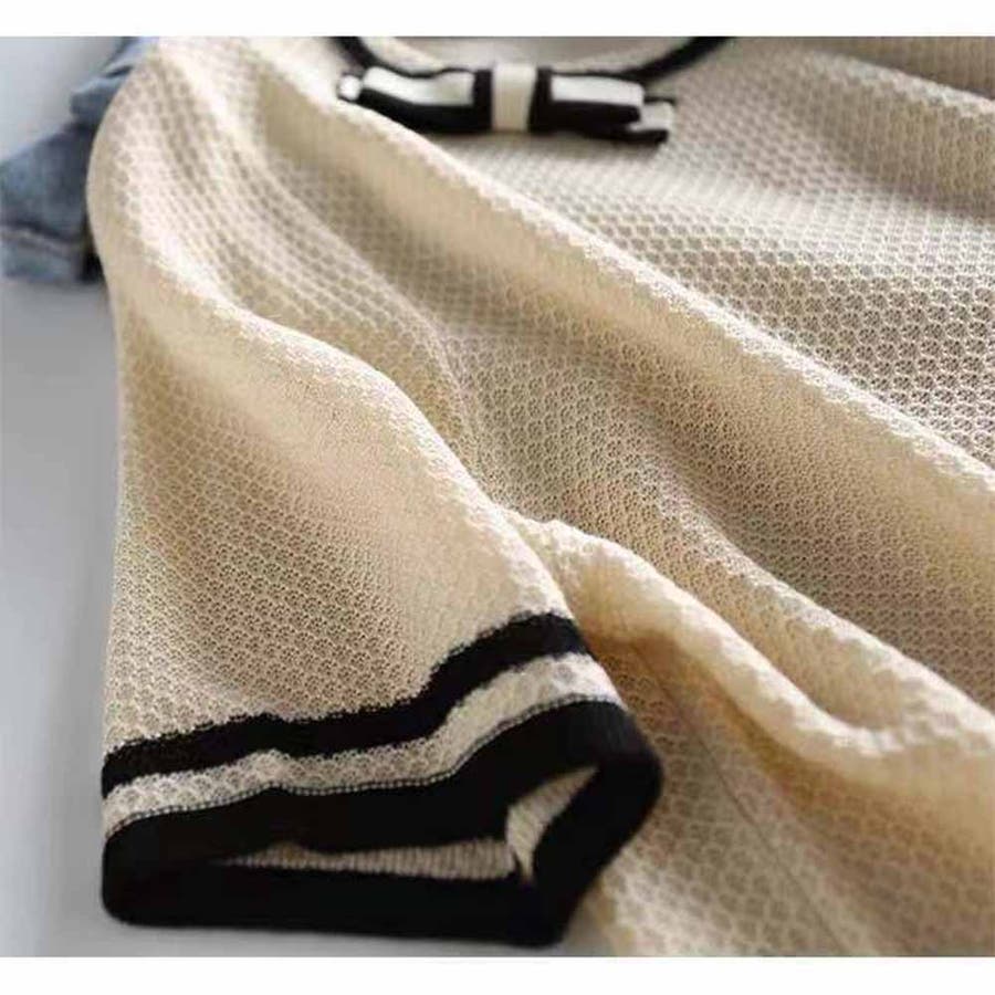 半袖ニット 透かし編みトップス 夏服