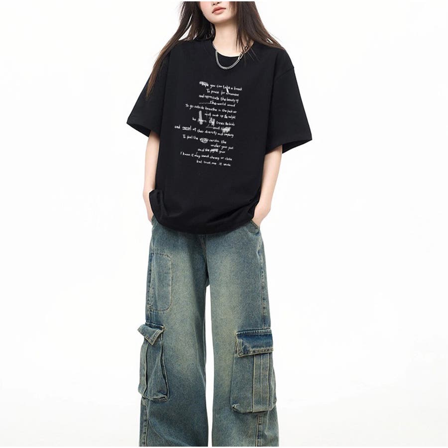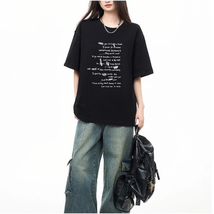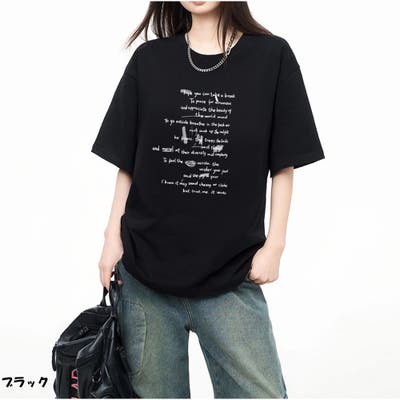 オーバーサイズ半袖Tシャツ 英字プリント 韓国風