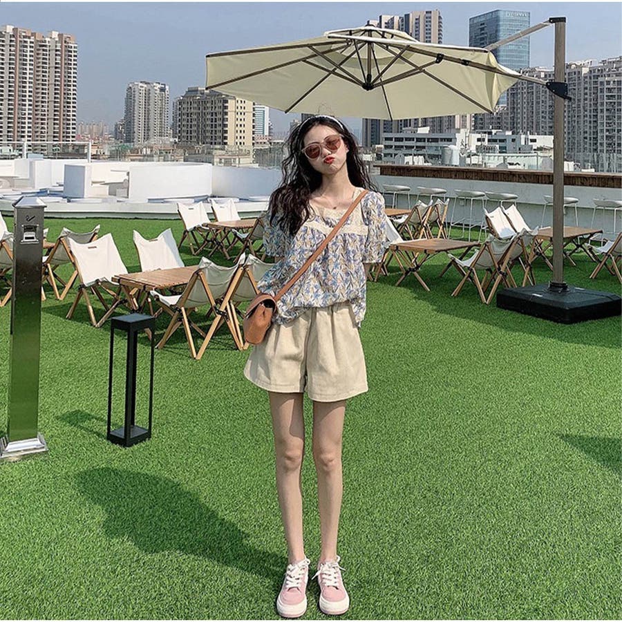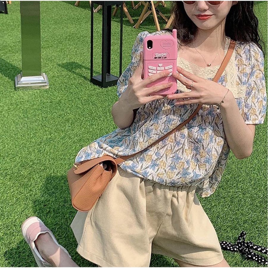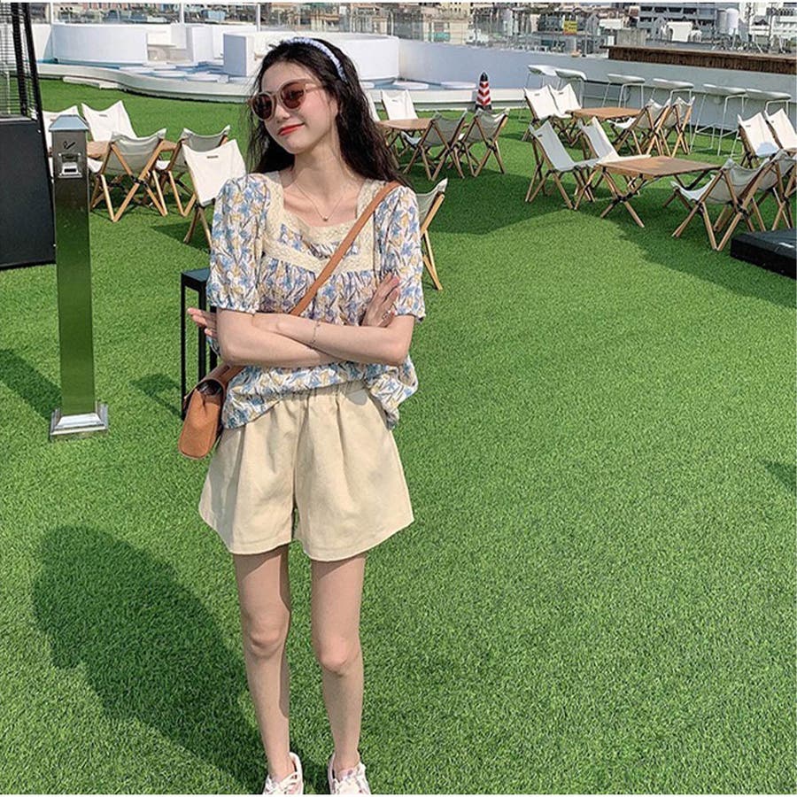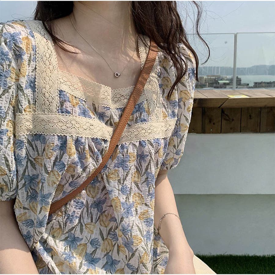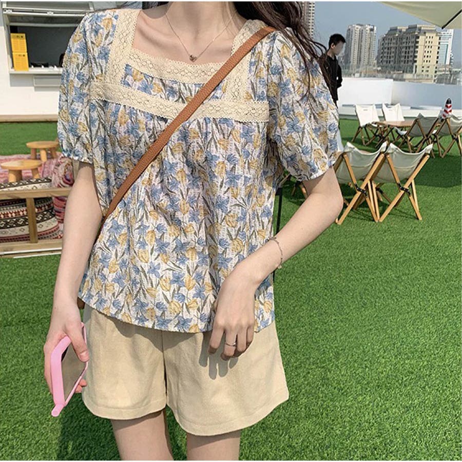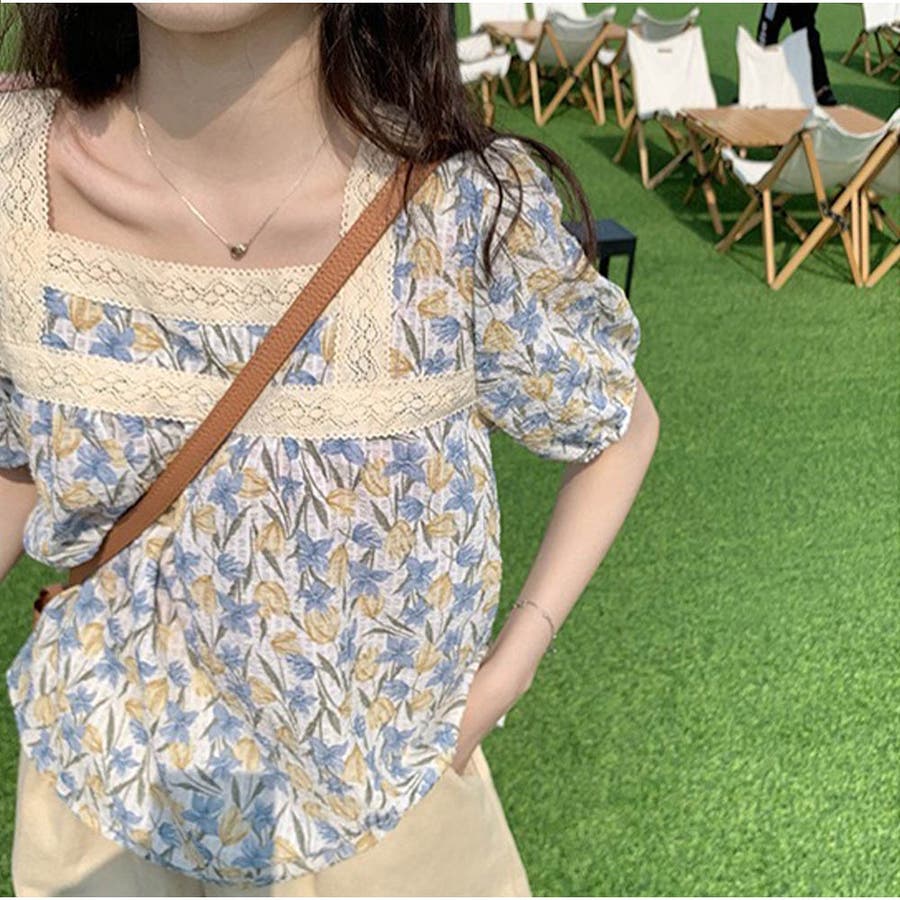 トップスブラウス スクエアネック 春 夏 花柄 かわいい