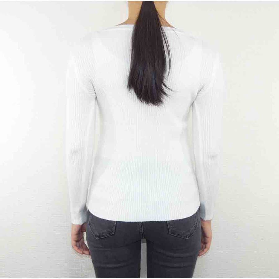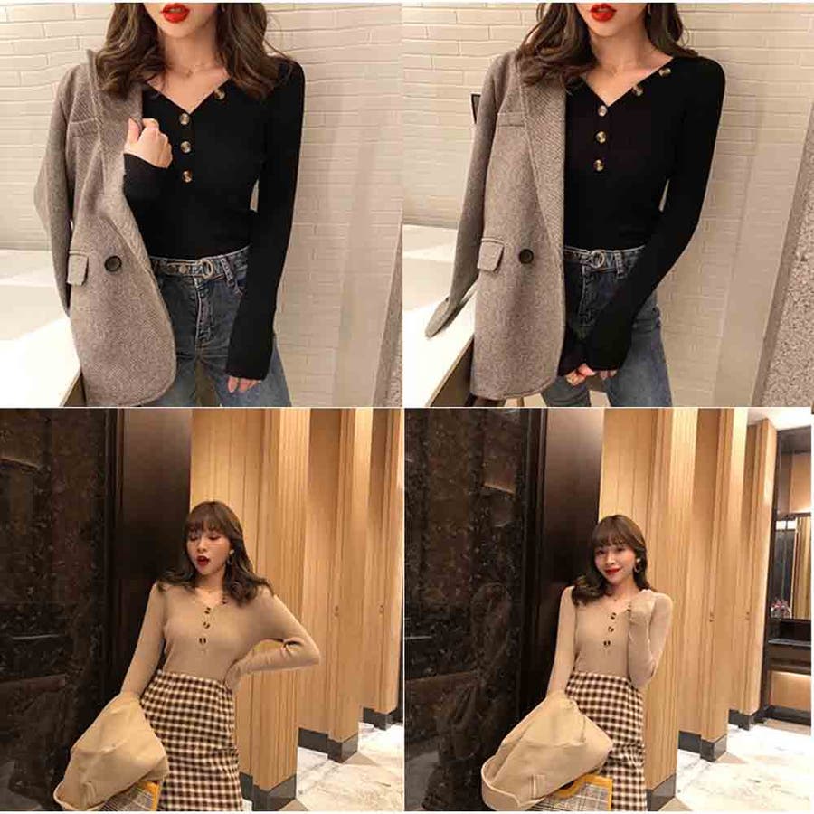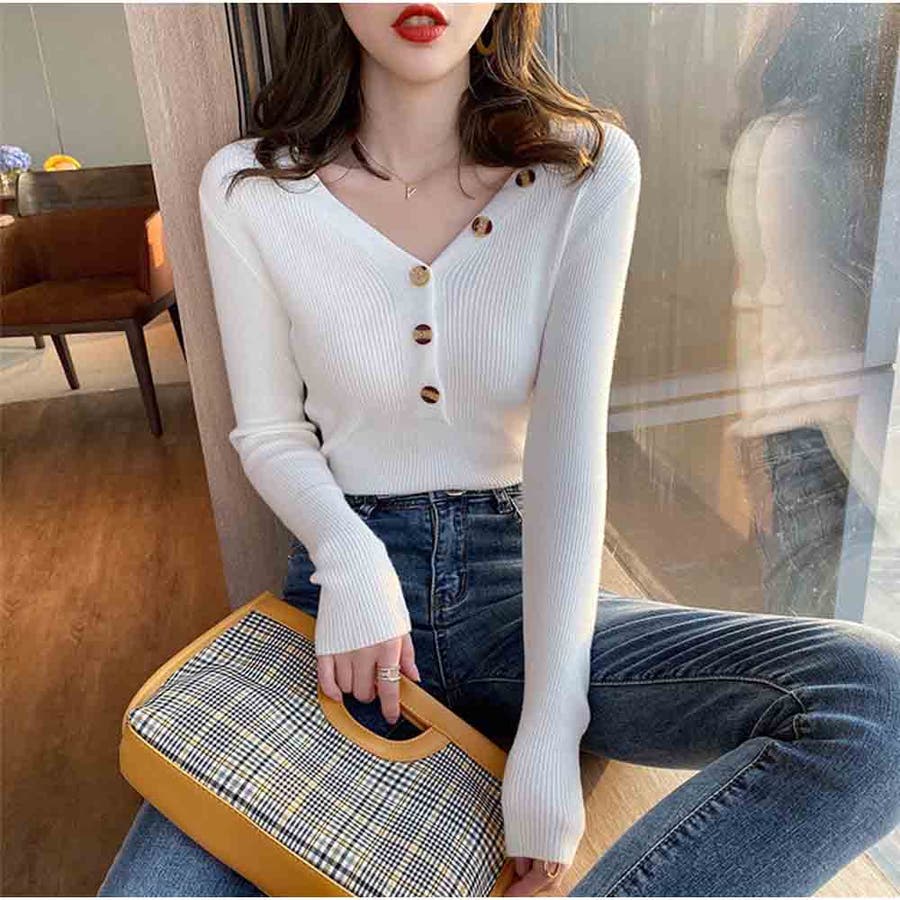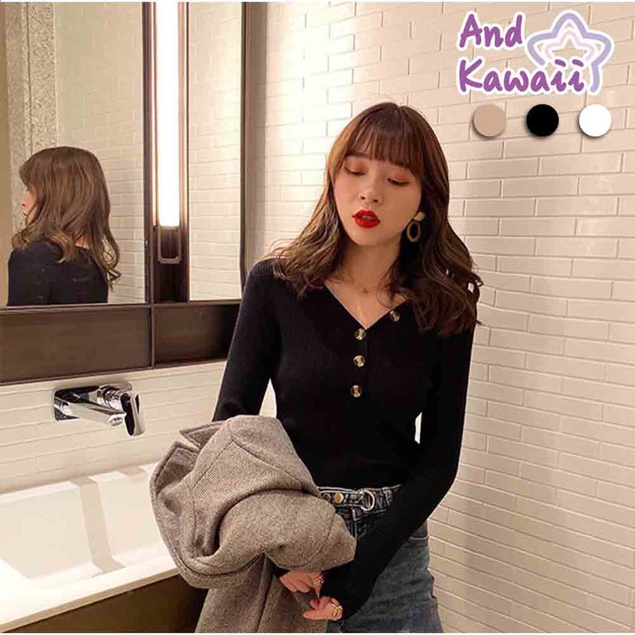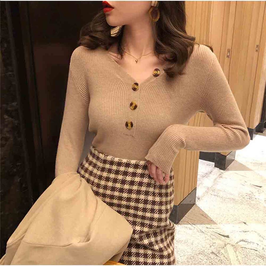 リブニット 長袖 ボタン 無地 レディース Vネック 韓国ファッション