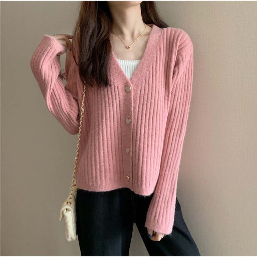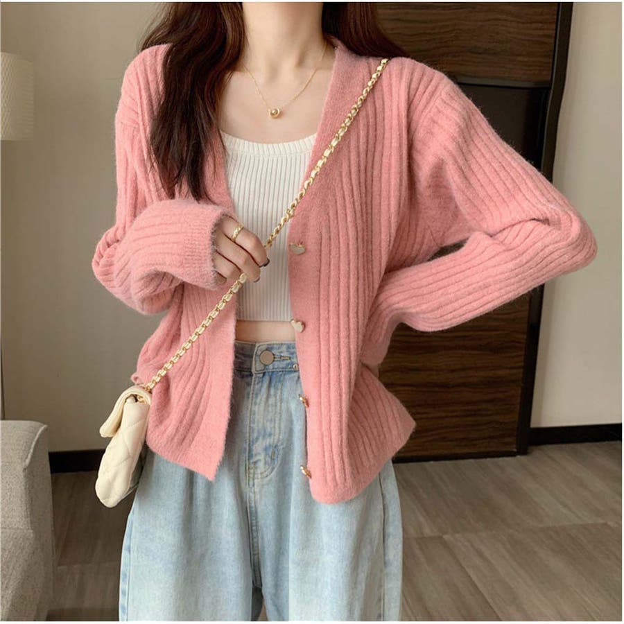 カーディガン 秋新作 長袖 無地 柔らかなニット 羽織り Vネック レディース