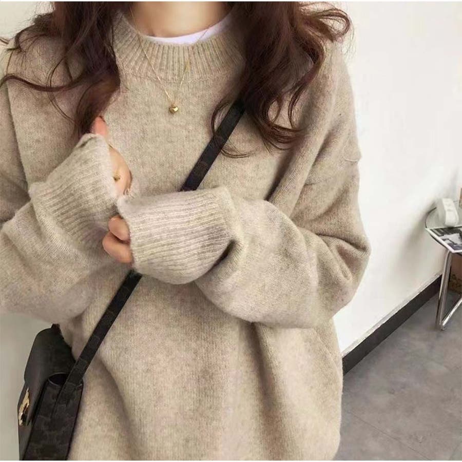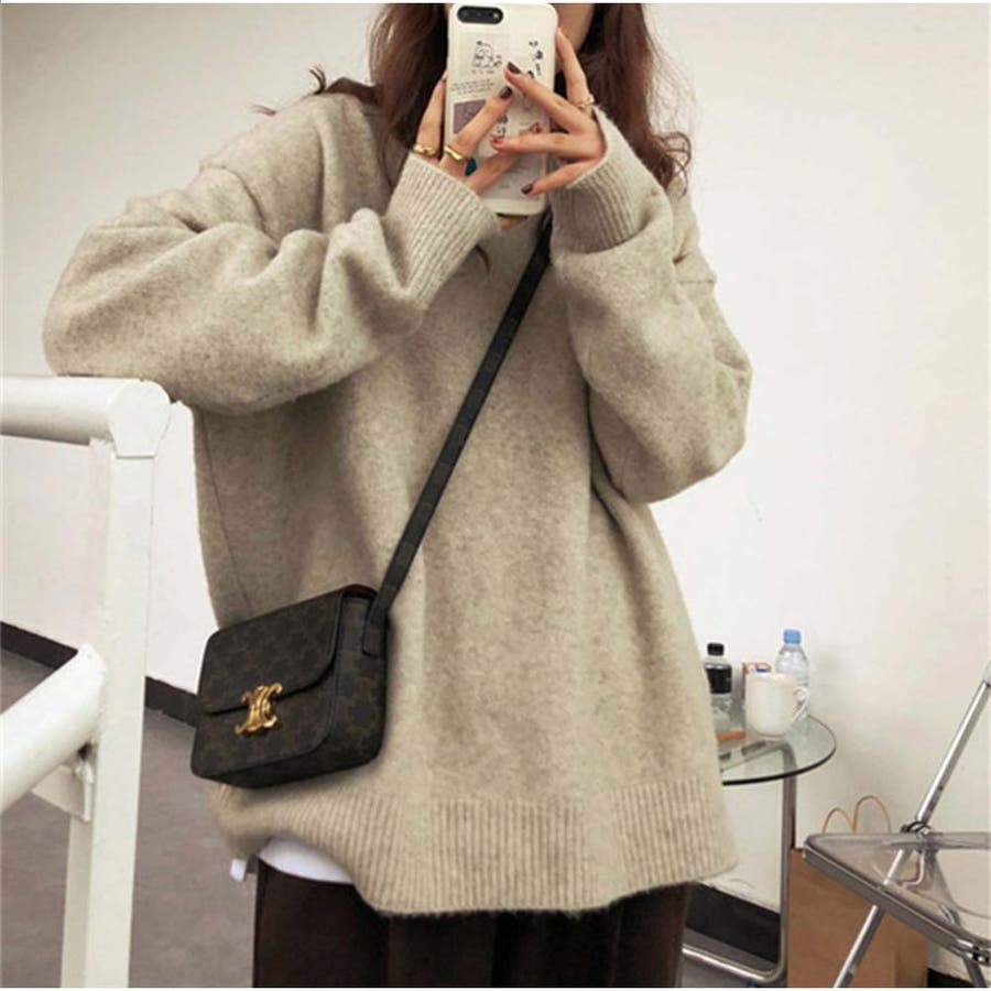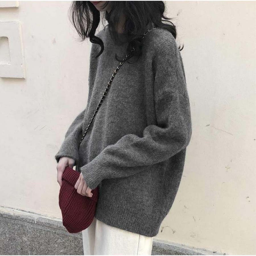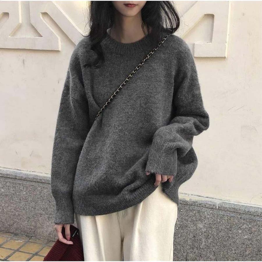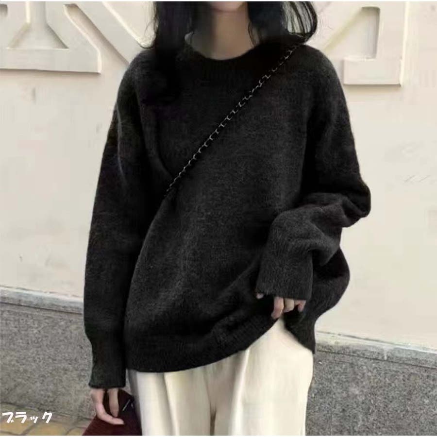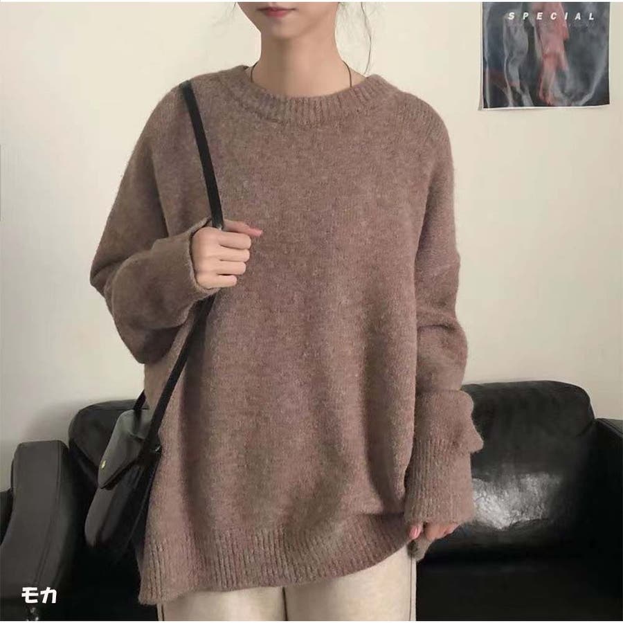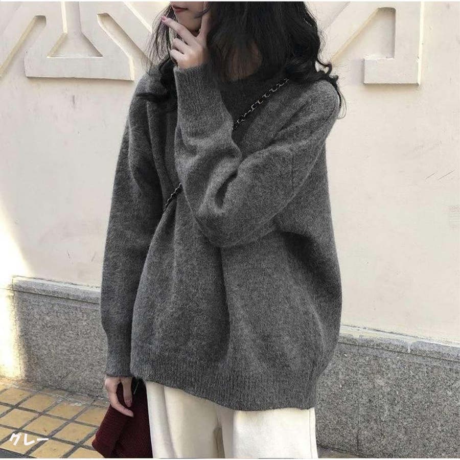 ニット 長袖ニットソー トップス 無地 秋冬 ゆったり クルーネック 秋 冬