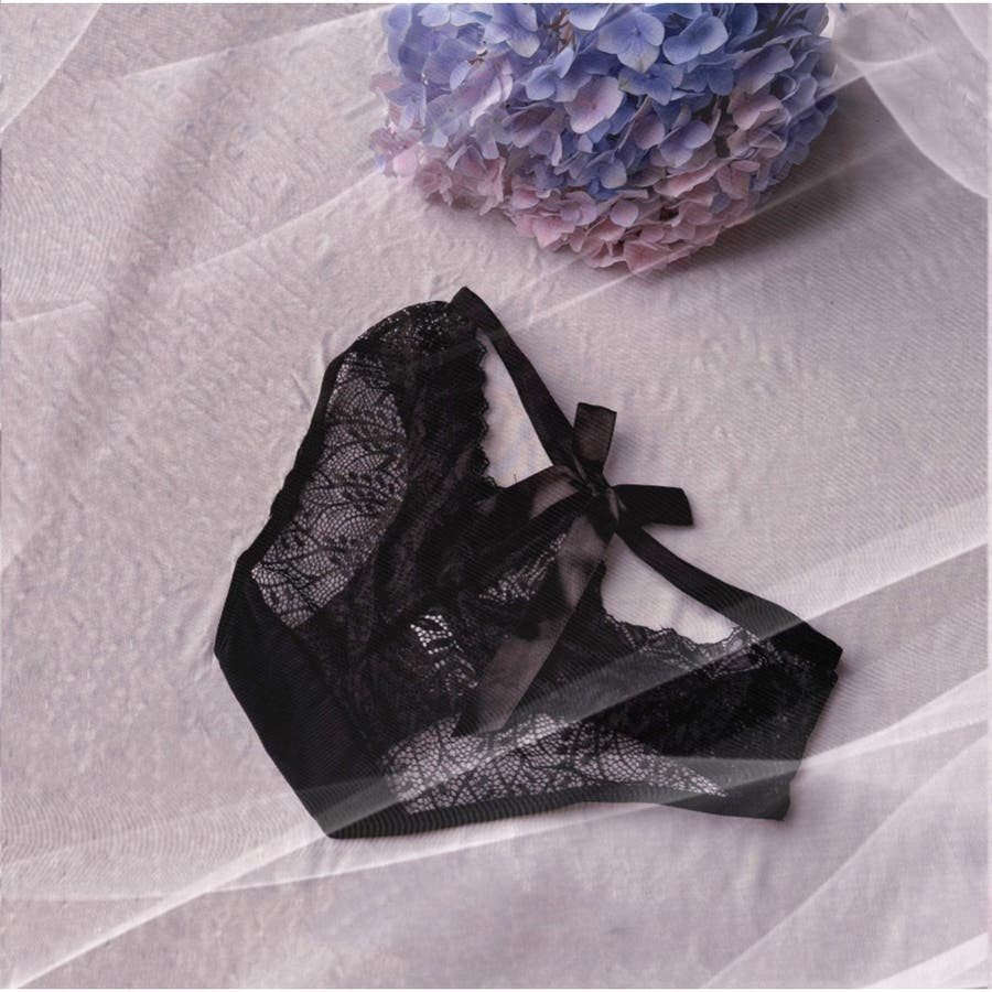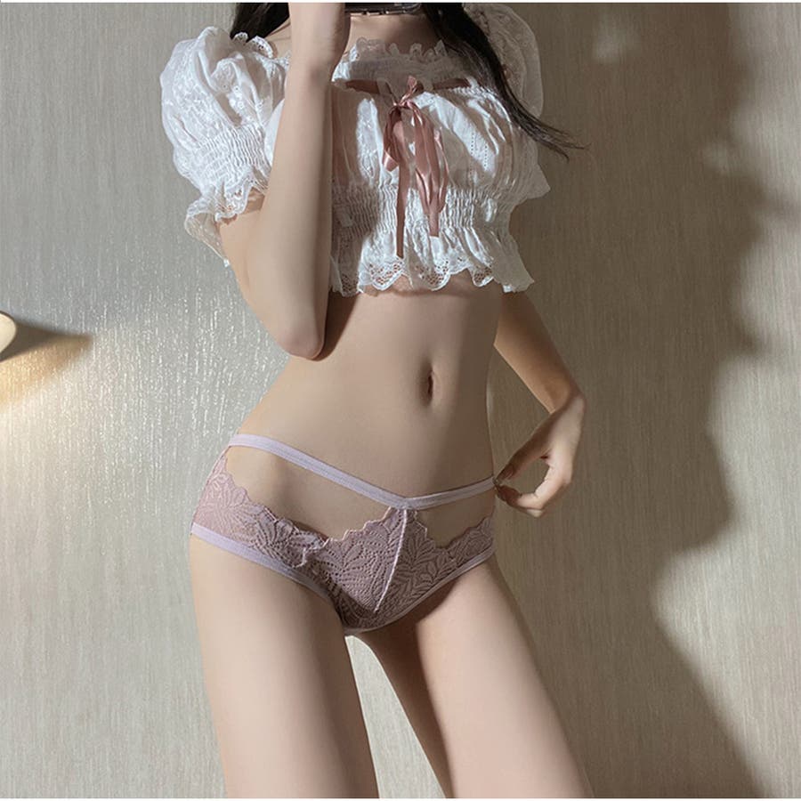 背面の大きなリボンデザインが可愛らしさを引き立て、シースルーのレース素材が女性のエレガンスとセクシーさを際立たせます。