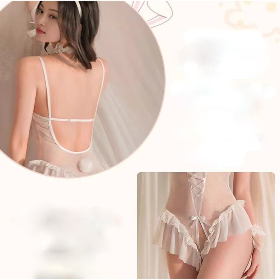 背面は大胆なU字カットで美背を演出し、さらに付属のふわふわ尻尾でキュートさ倍増。