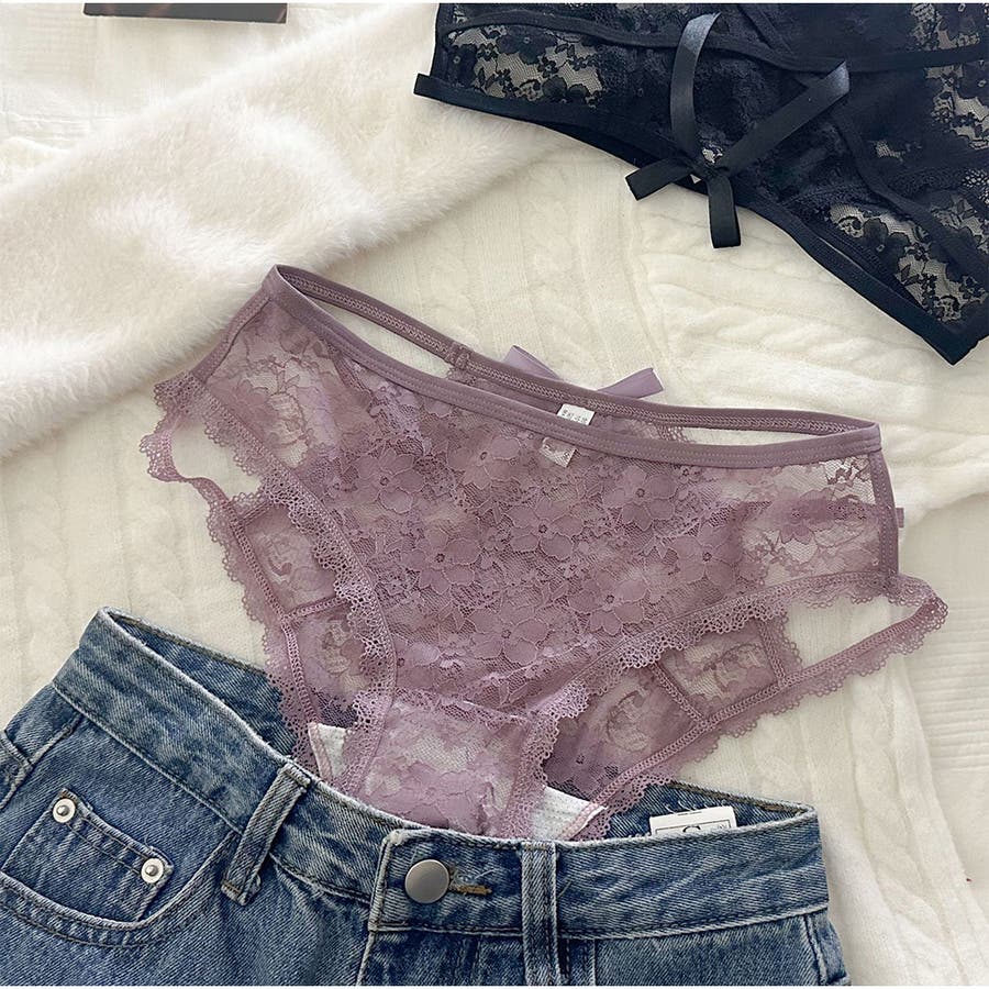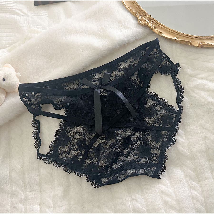 ショーツセクシー リボンバックレースショーツ 花柄 美尻ショーツ パンティー