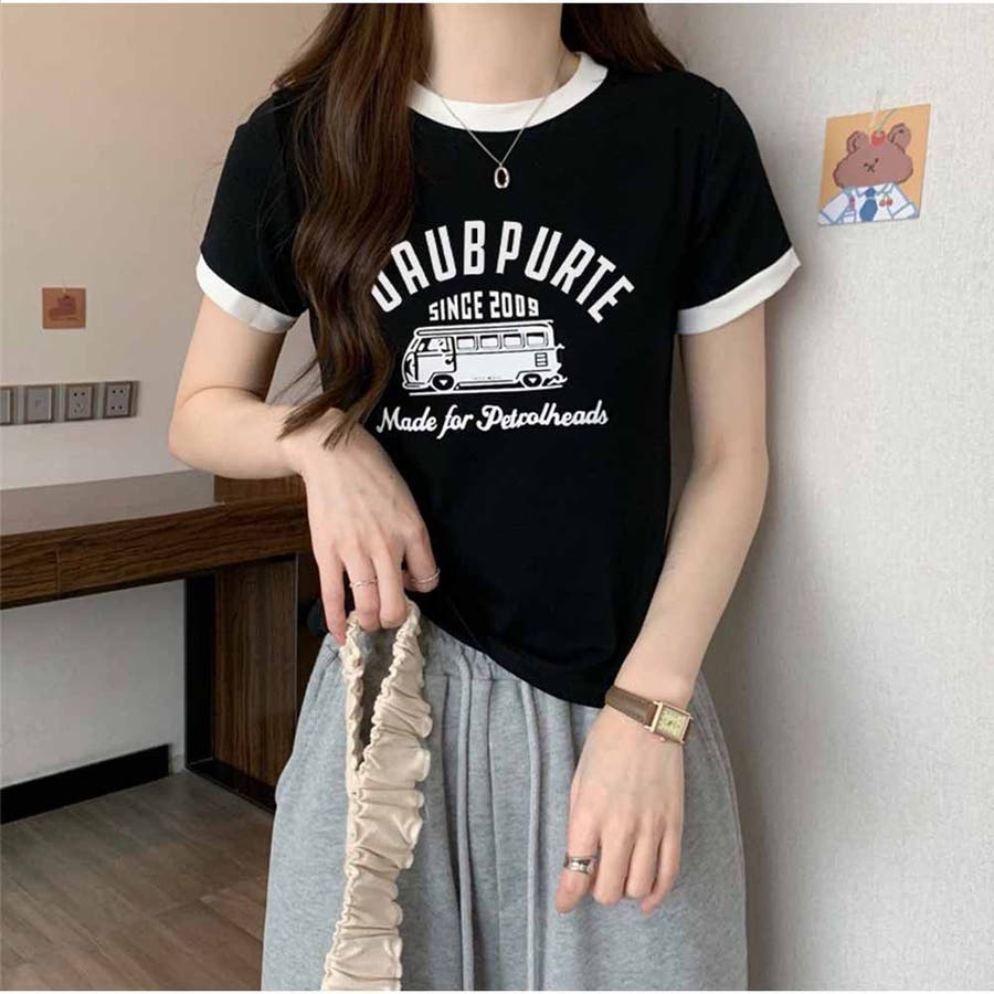 半袖Tシャツ ロゴプリント ショート丈Tシャツ レディース 夏韓国ファッション