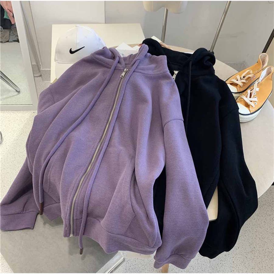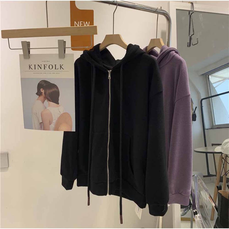スウェット パーカー ジップパーカー トップス 無地 韓国ファッション