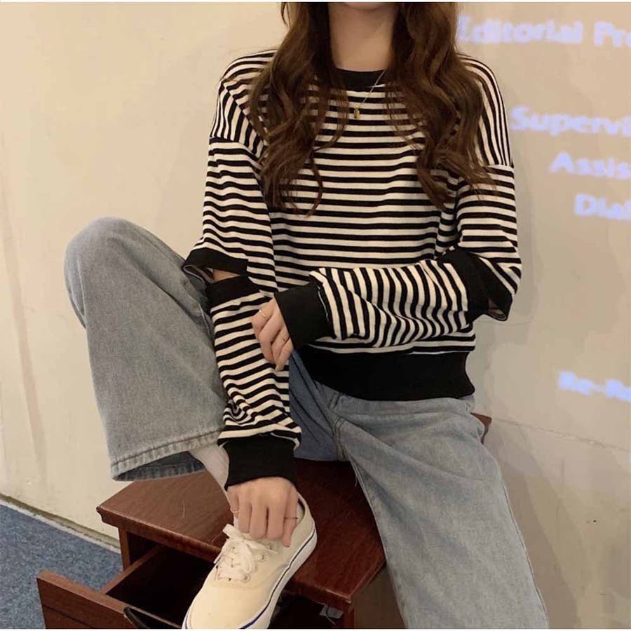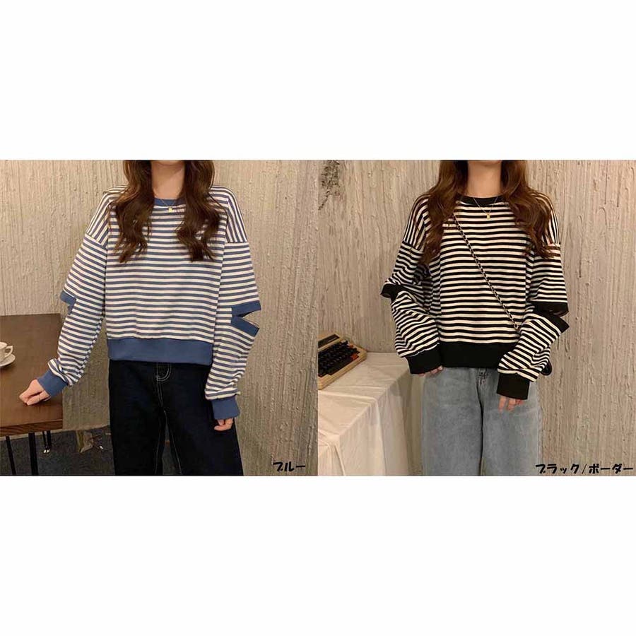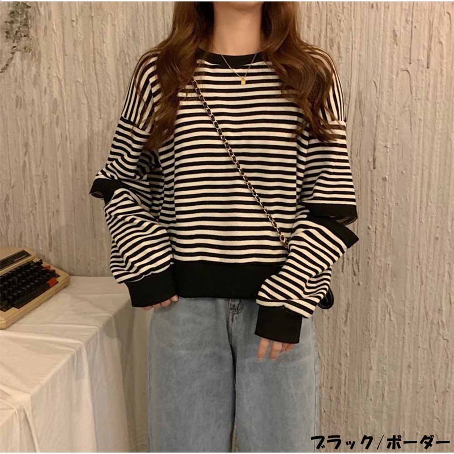 長袖Tシャツ ショート丈 レディース トップス ボーダー柄 韓国ファッション
