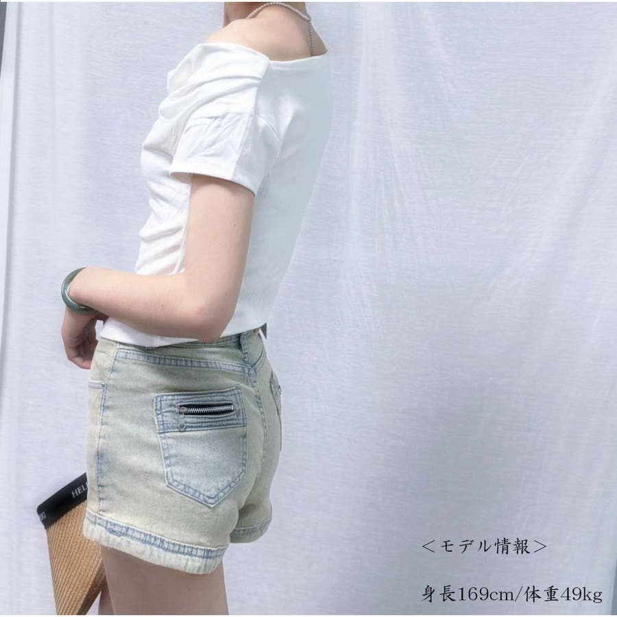 そのまま半袖として着用しても肩を落としてオフショルとしても2wayで楽しめるトップスアイテム。