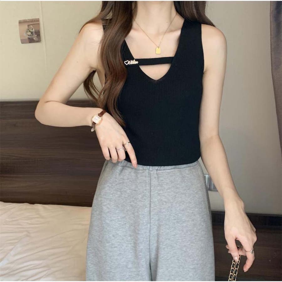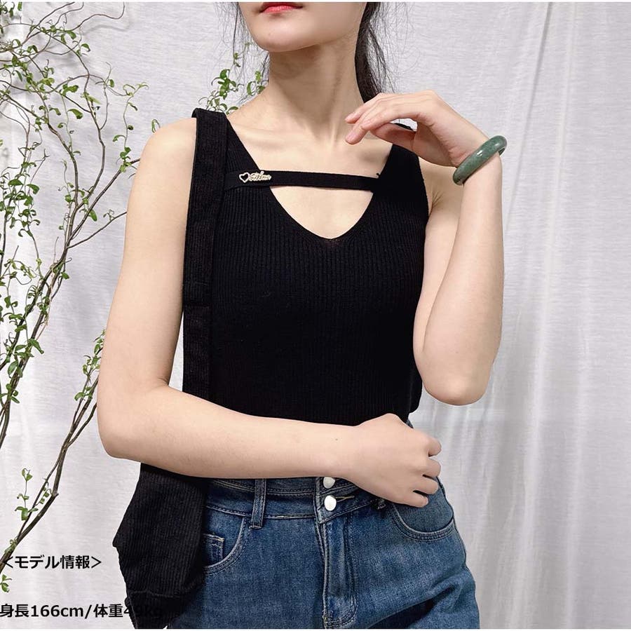 リブニットタンクトップ トップス フロントオープン Vネック ベーシック