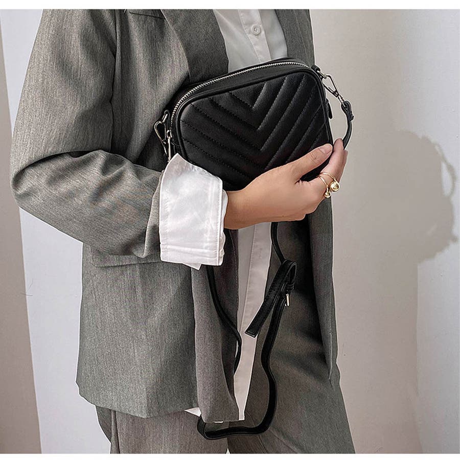 高級感漂うキルティングフェイクレザーのショルダーバッグ。