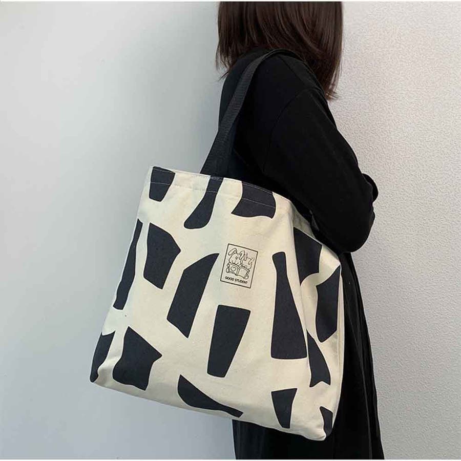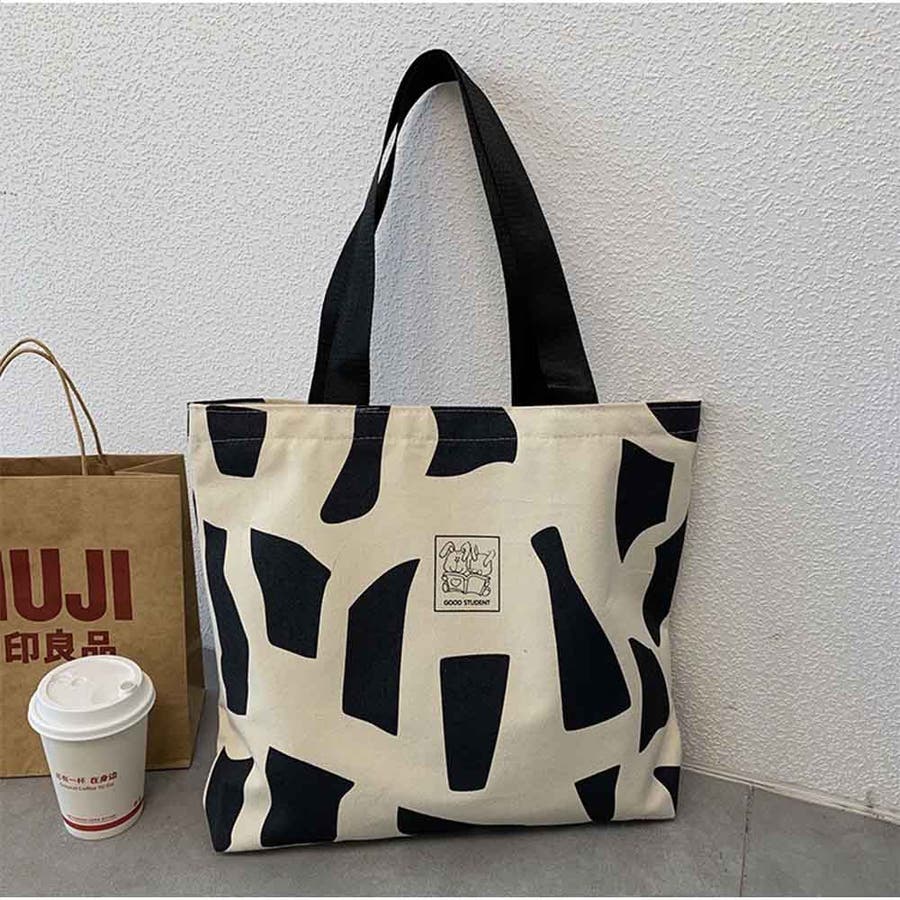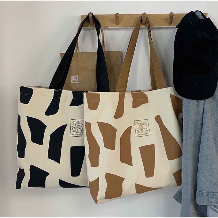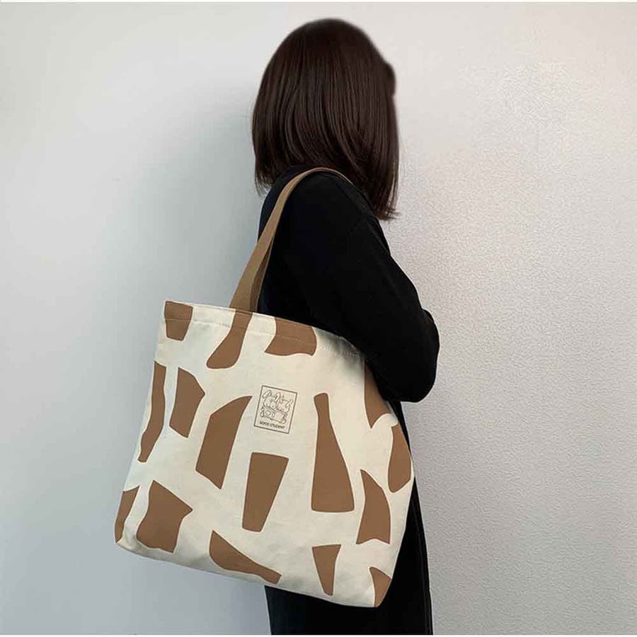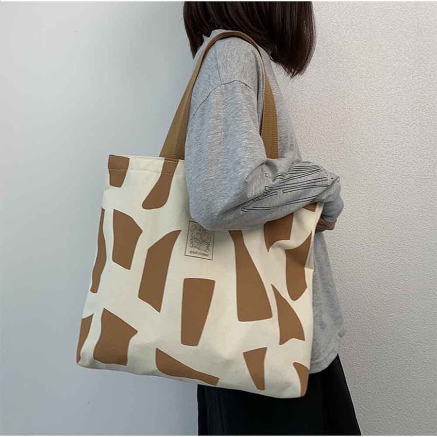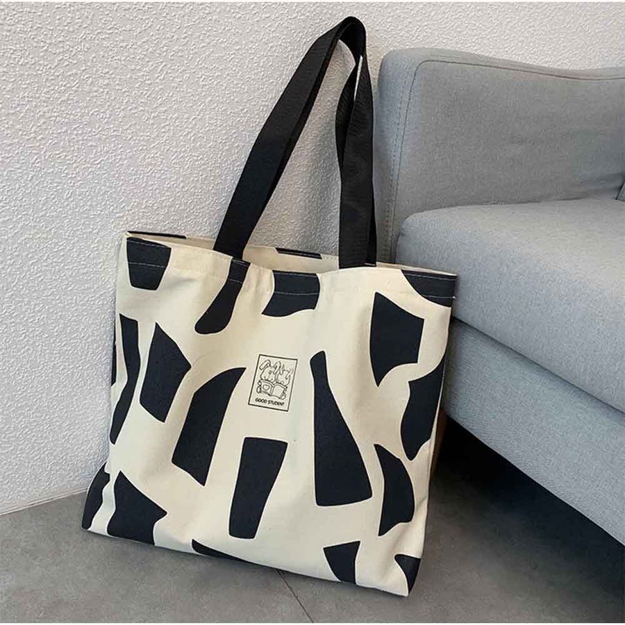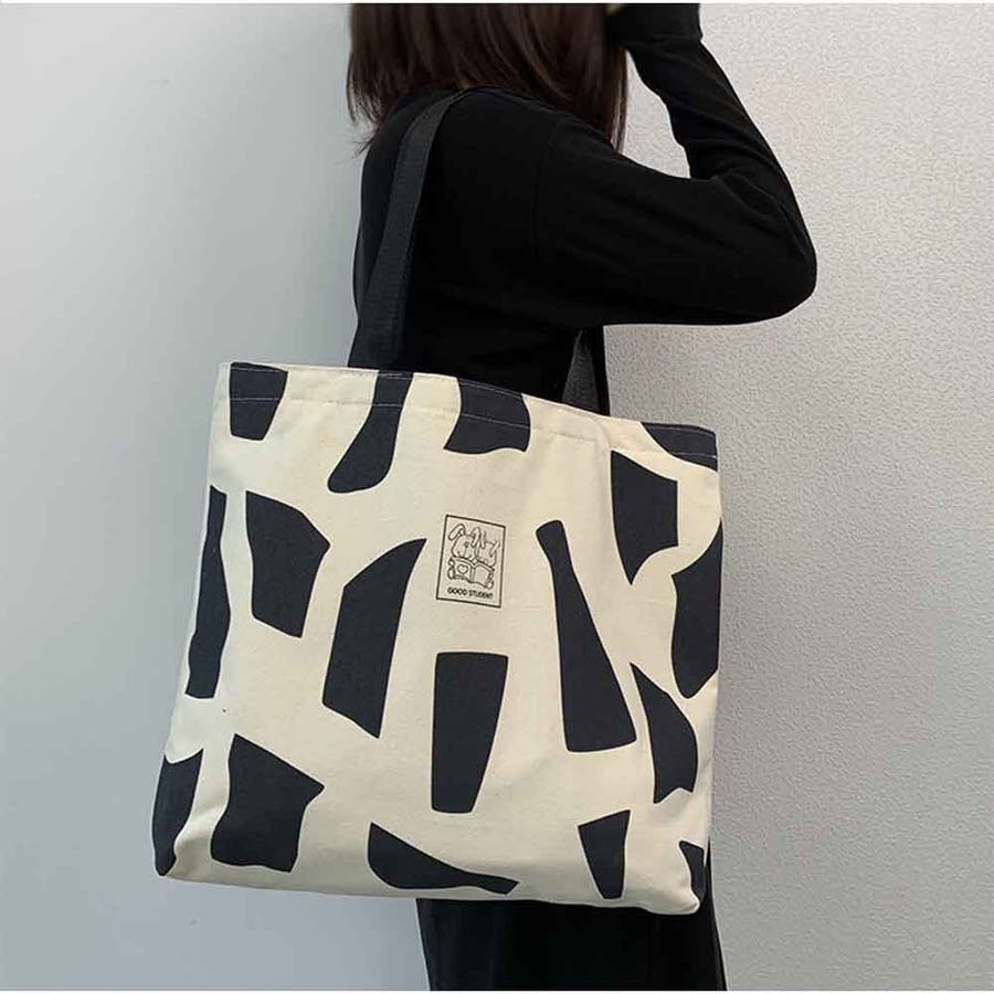 ナチュラルな生成り色のキャンバス地に、大胆な幾何学模様を施し、スタイリッシュな印象に。