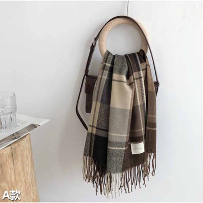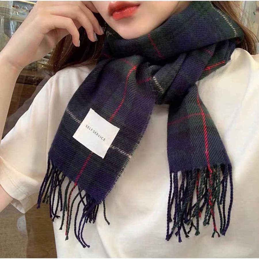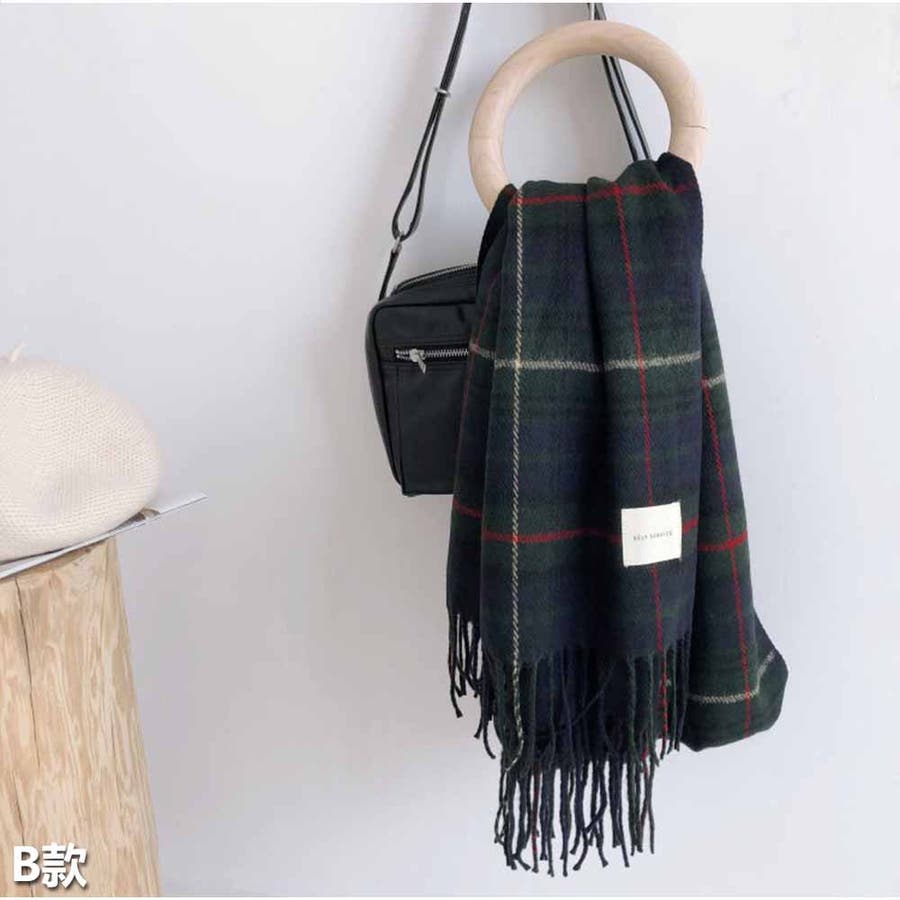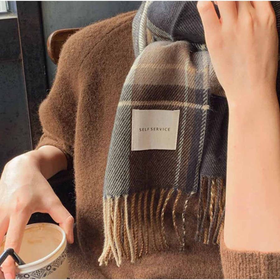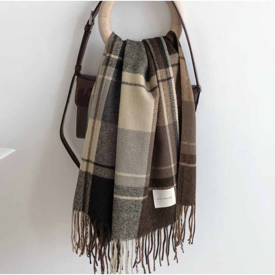 マフラー ボリュームフリンジマフラー チェック柄 韓国ファッション カジュアル