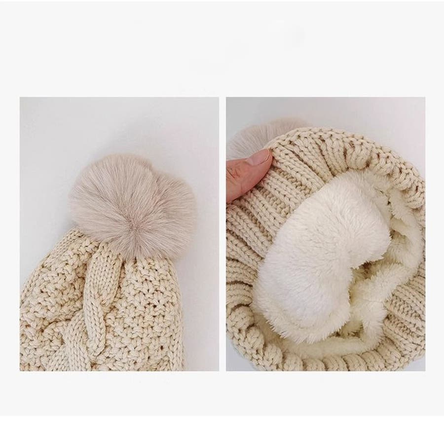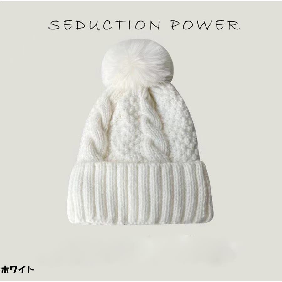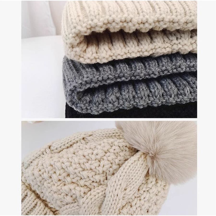 シンプルな無地のスタイルに大きなファーポンポンがアクセントとなっています。