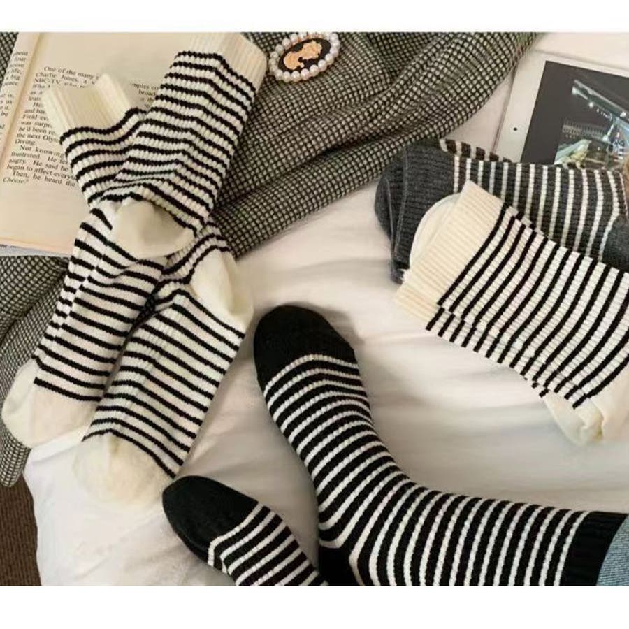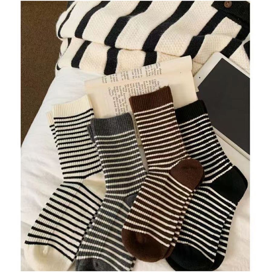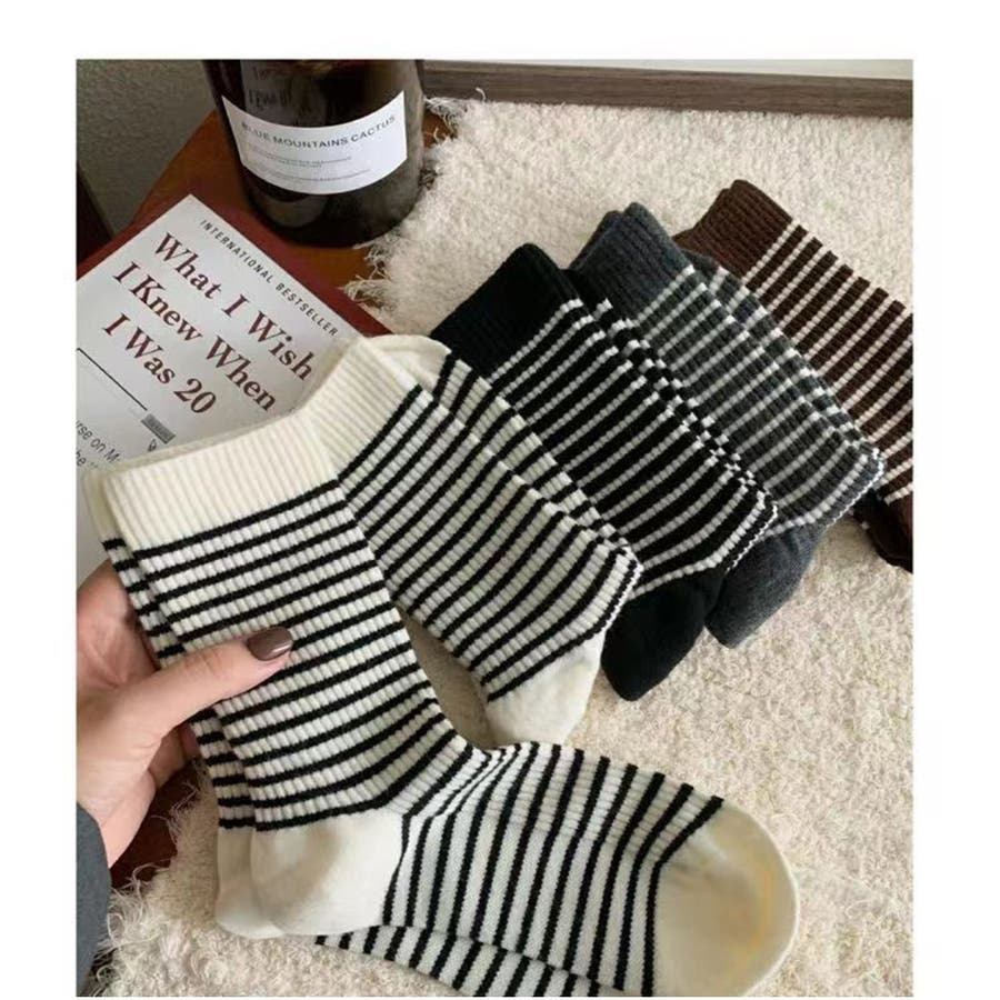 ボーダーソックス カジュアル 靴下 綿 通気性