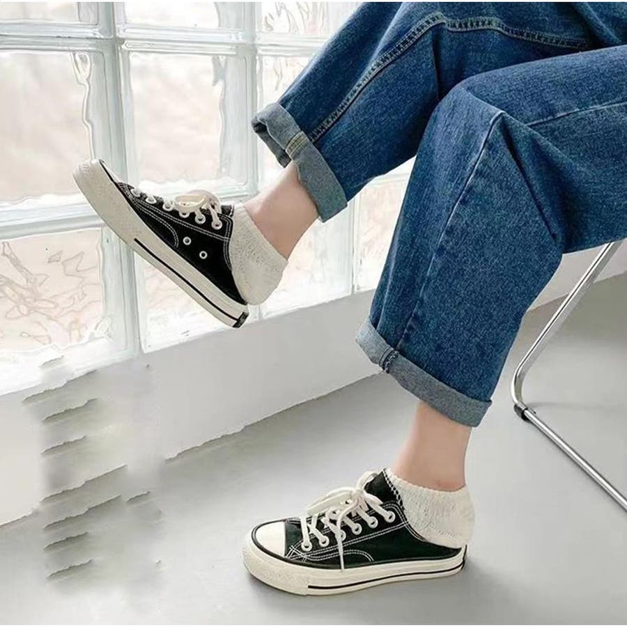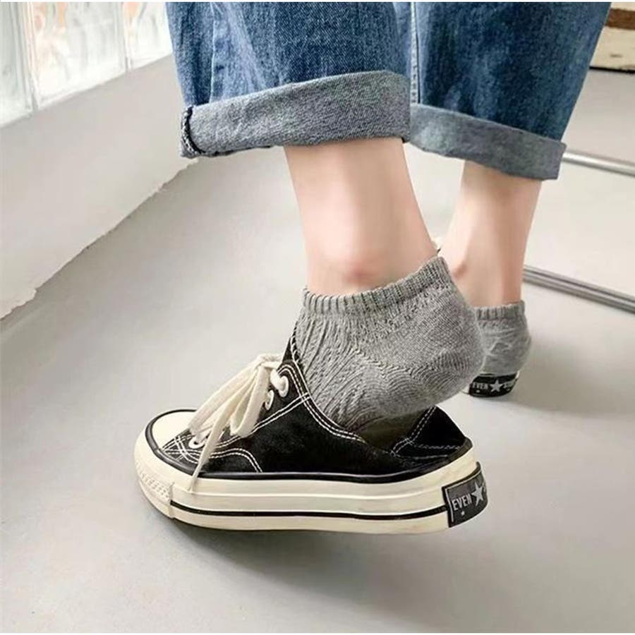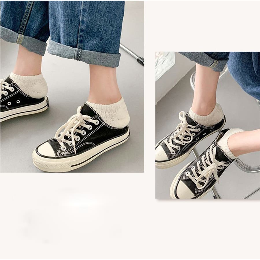 くるぶしが隠れるくらいの絶妙丈で、スニーカーやローファーにもぴったり。