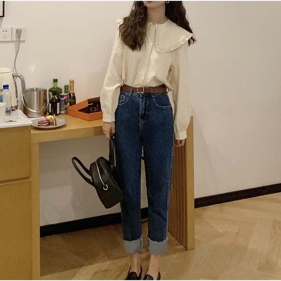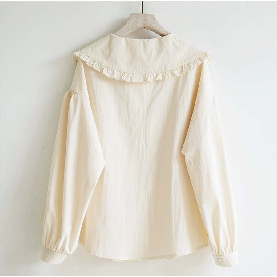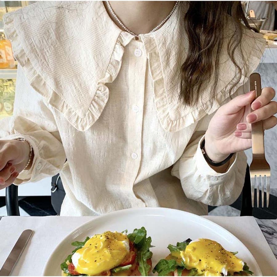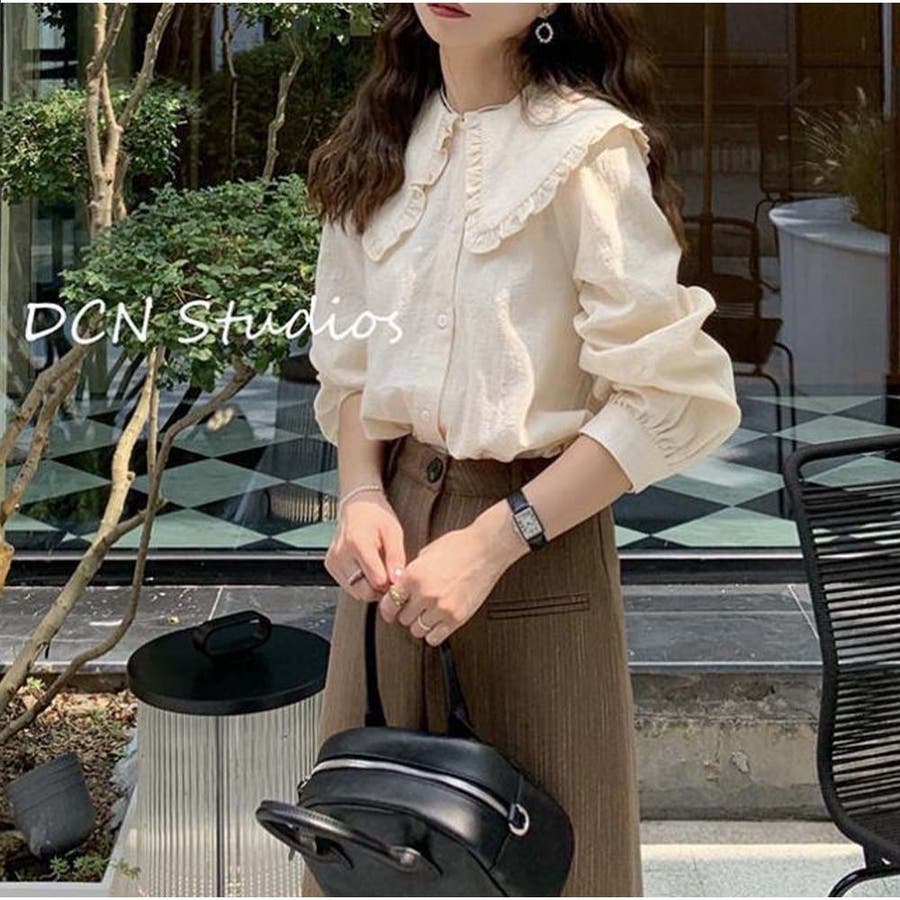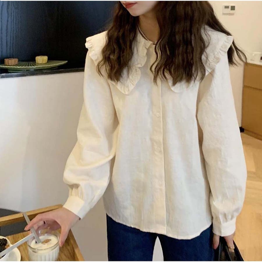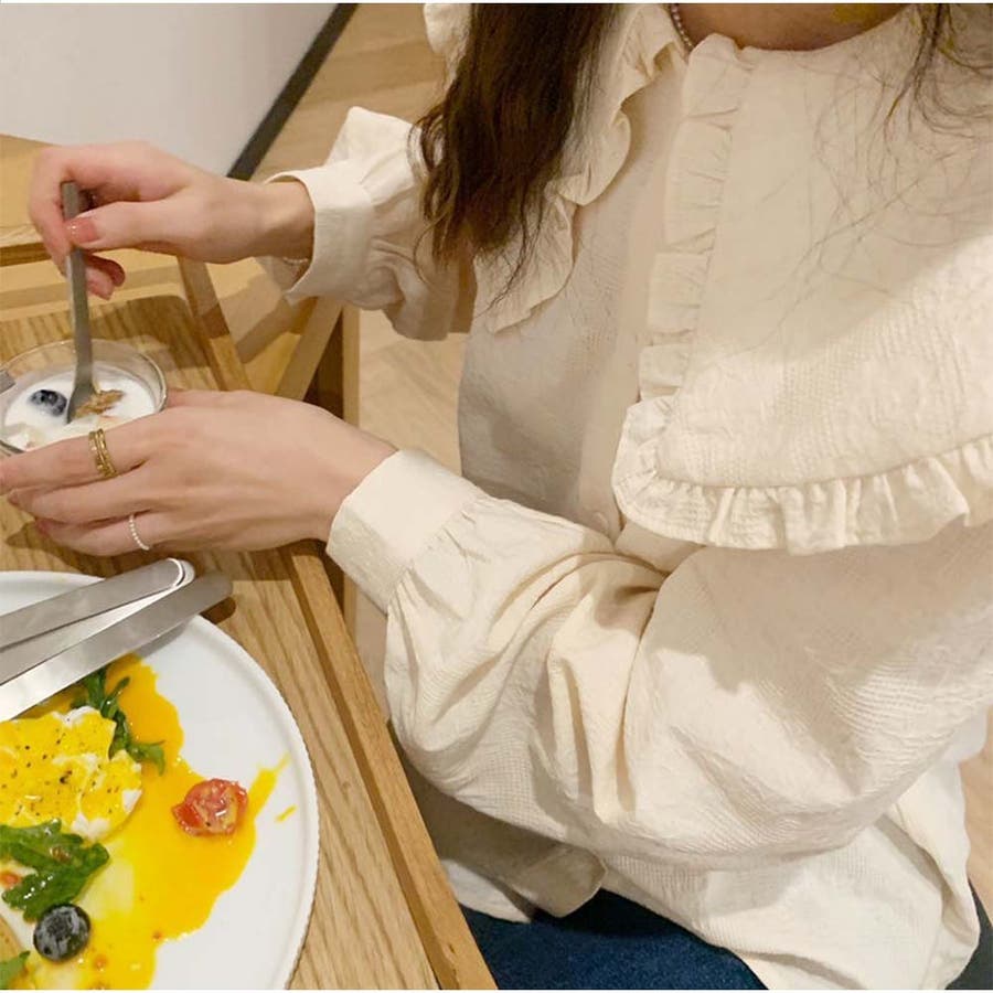 フリルシャツ ブラウス 長袖 無地 きれいめカジュアル 春夏