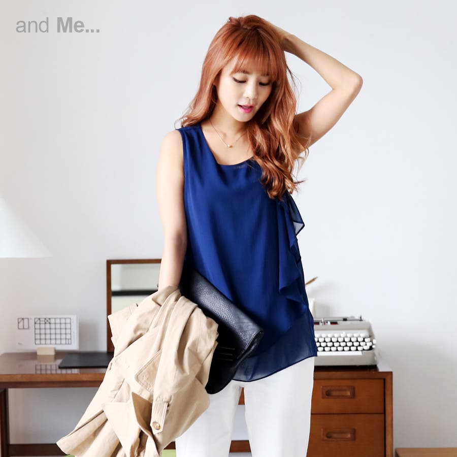 2015春夏新作♪透け感シフォン×美ドレープ!!ノースリーブ シフォントップス …
