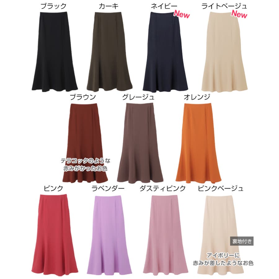 派手かな、と少し迷いましたが、ピンクを購入しました。現物は私の好きな色でした。ピンクというよりシックな赤です。秋っぽい色です。コーディネートのアクセントになります。マーメイドラインはきれいですが、丈は長めです。ヒールブーツや厚底スニーカーにあわせて着たいと思います。