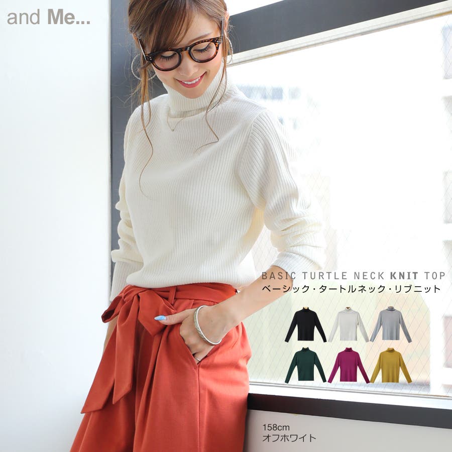 タートルネック 長袖 リブ ニット セーター レディース 無地 トップス