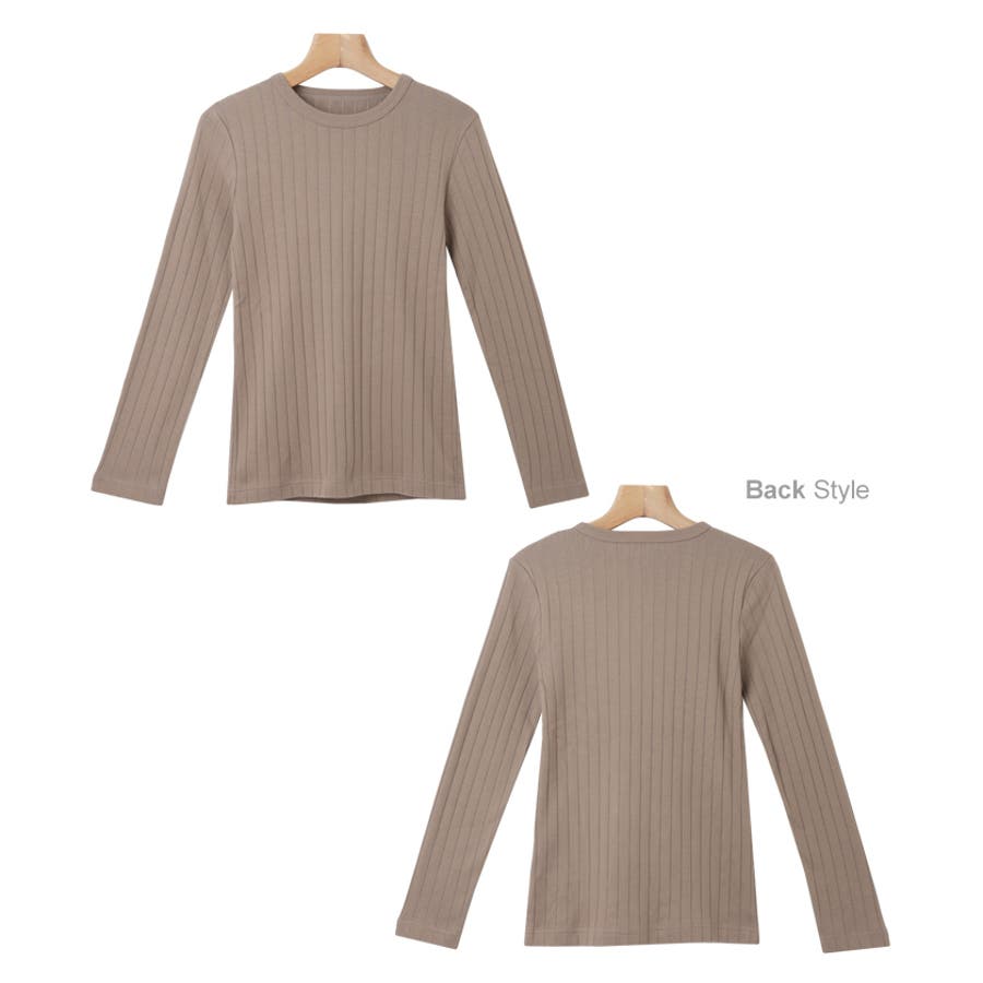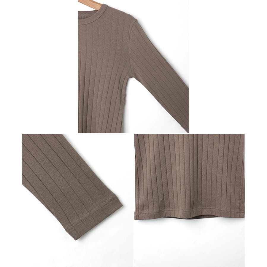 【ブラウン】コットン ワイドリブ 長袖Tシャツ