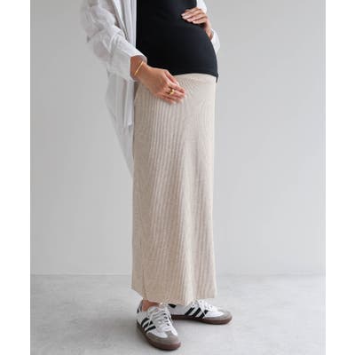 【グレージュ【予約B】】マタニティ セルフカットリブ タイトスカート