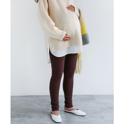 【ライトブラウン】裏起毛 テレコ マタニティ