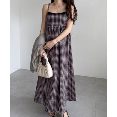 【ブラウン×オフホワイト【予約A】】バックオープン キャミ ワンピース