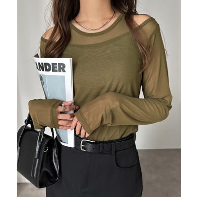 素肌が透けるチュール素材のレイヤードが目を惹く、