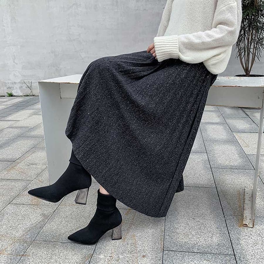 膝丈 スカート スカート 無地 キラキラ スカート