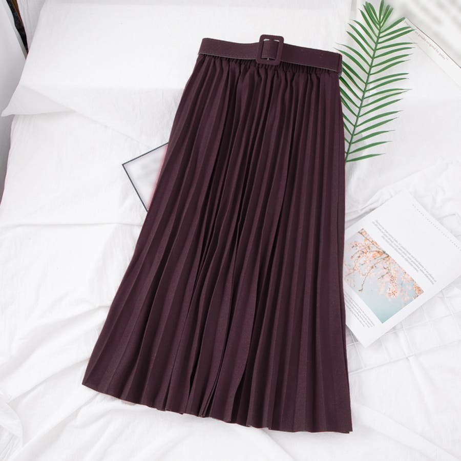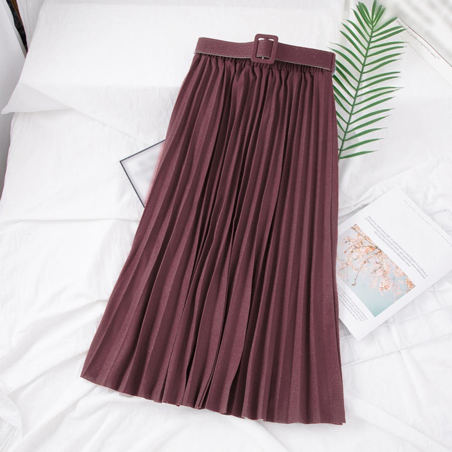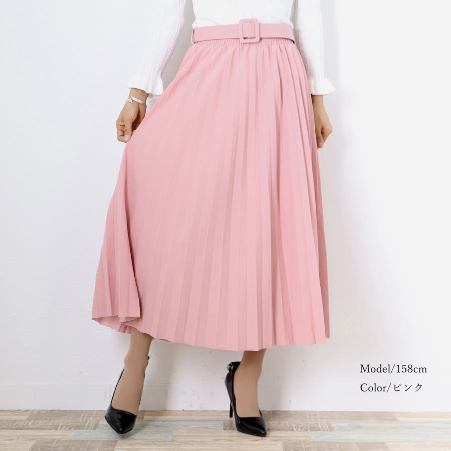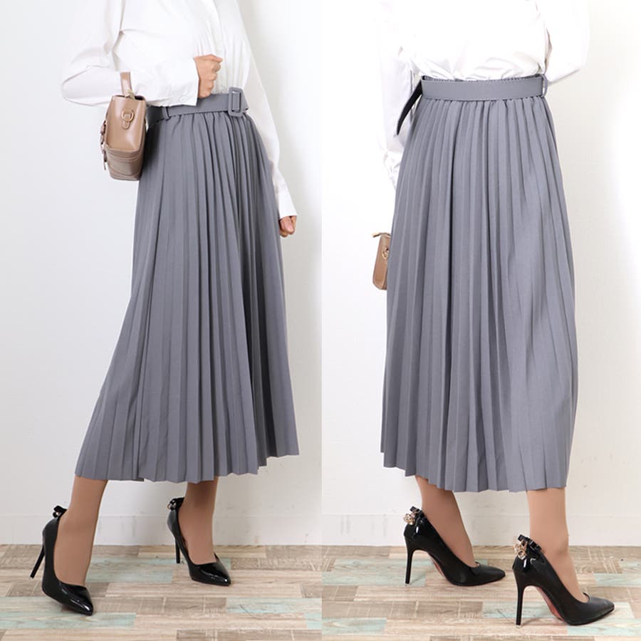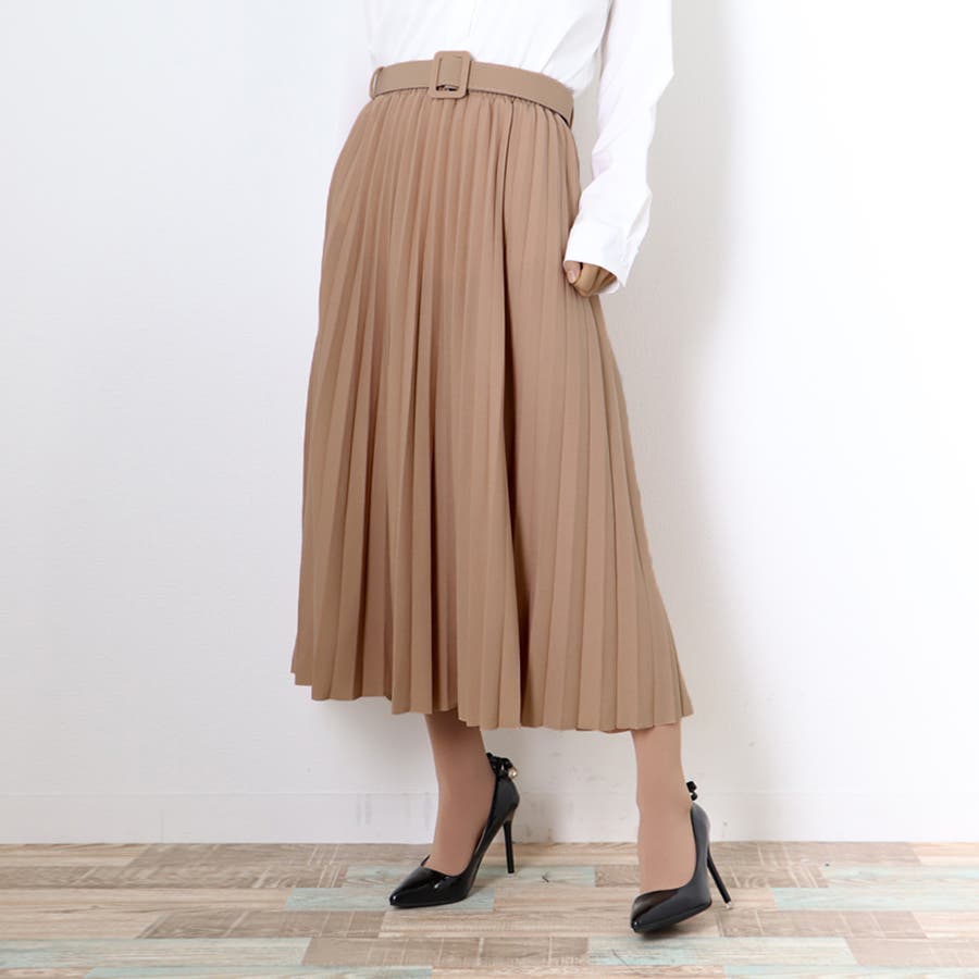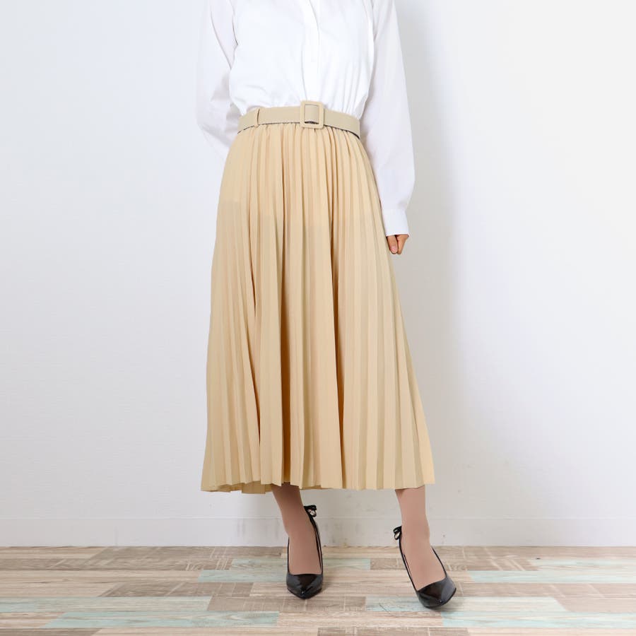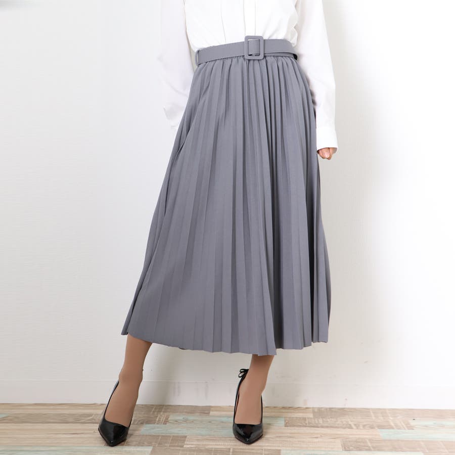 プリーツスカート ロング ベルト付き