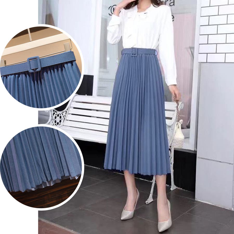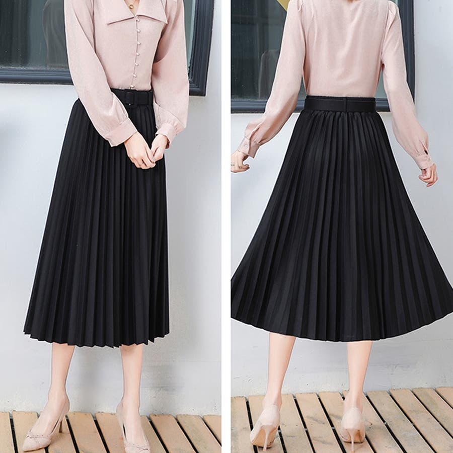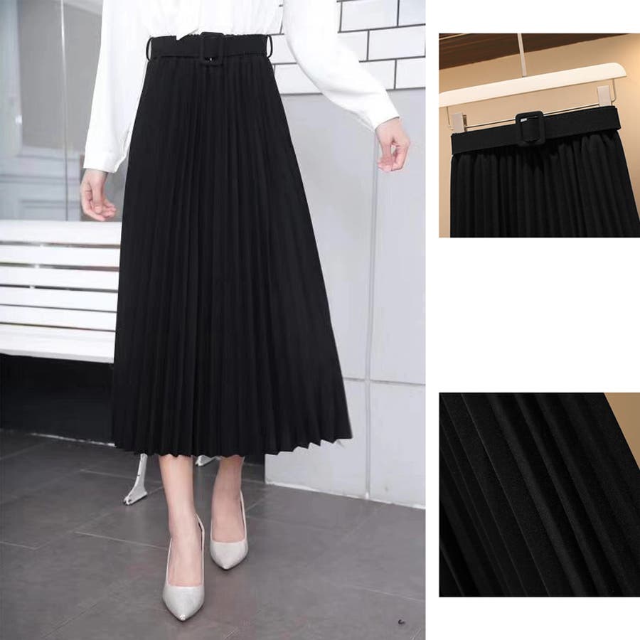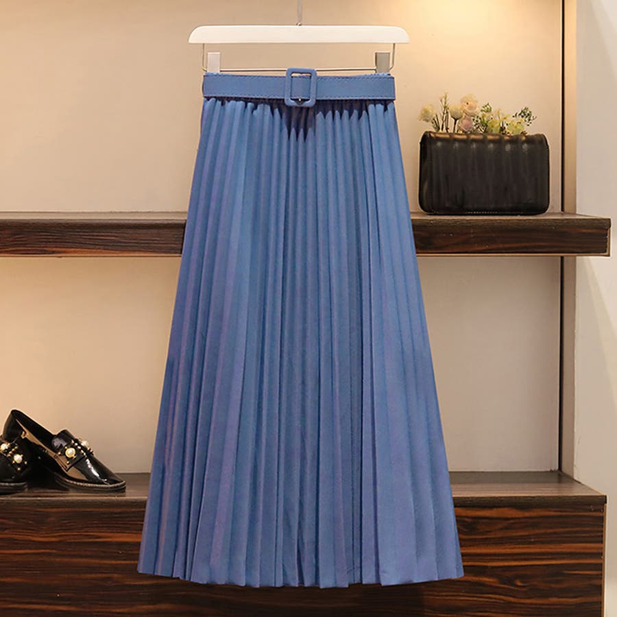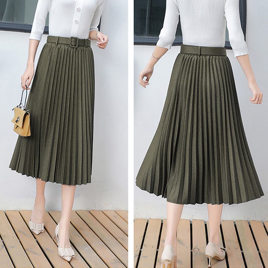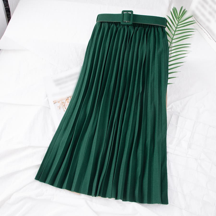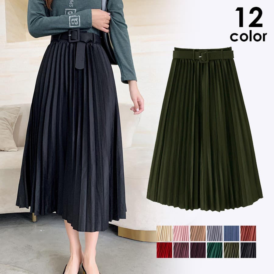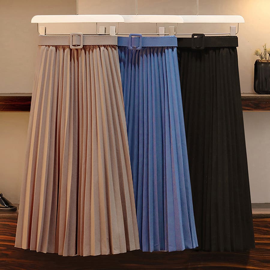 プリーツスカート ロング ベルト付き