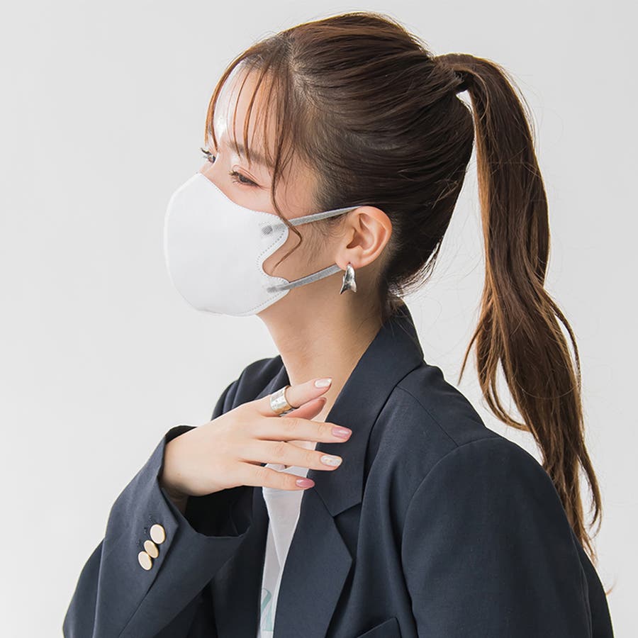 PM2.5や花粉、ウイルスや細菌などの微粒子から守り、感染予防に役立ちます。また、耳にかける紐部分が柔らかく、耳が痛くなりにくい設計になっています