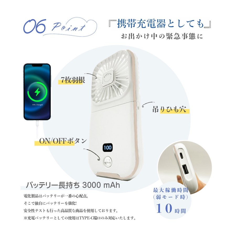 超軽量&静音設計なので、外出先やオフィスでも大活躍な夏の必需品です