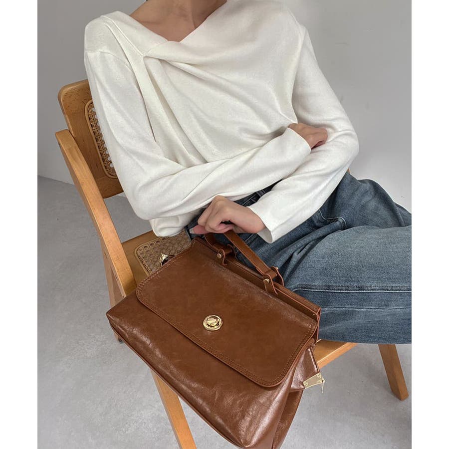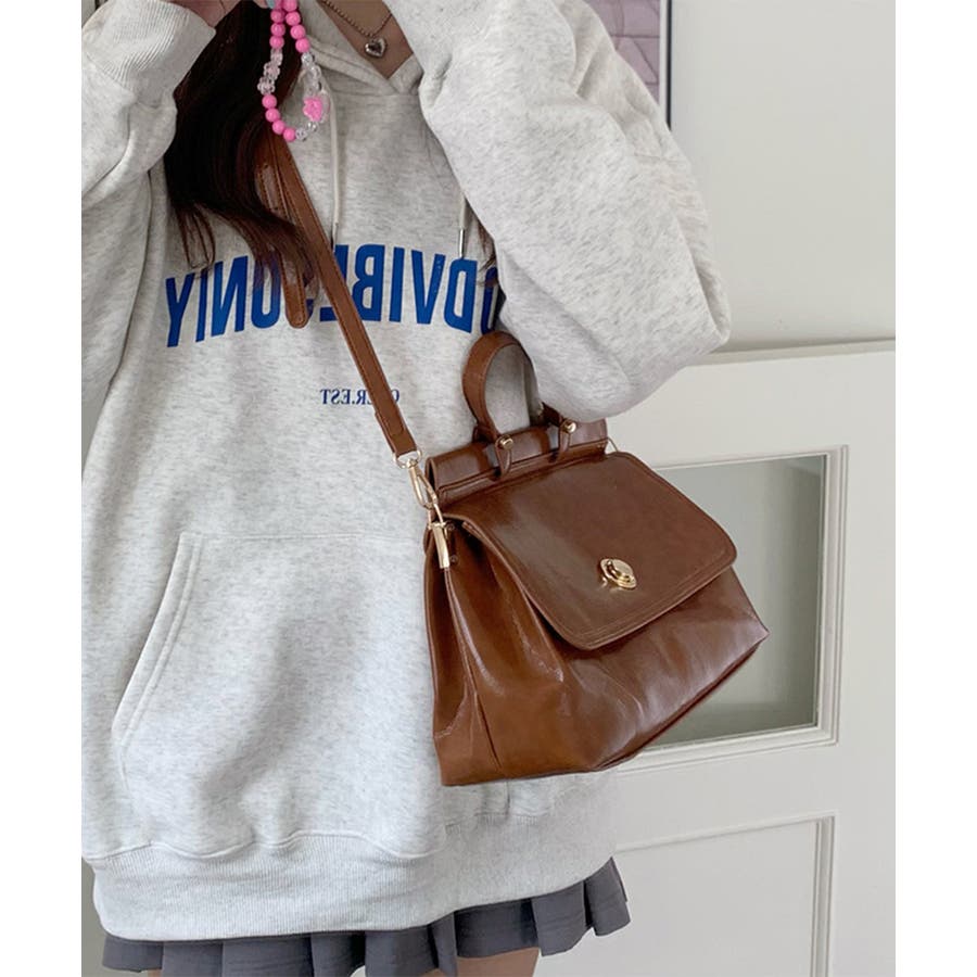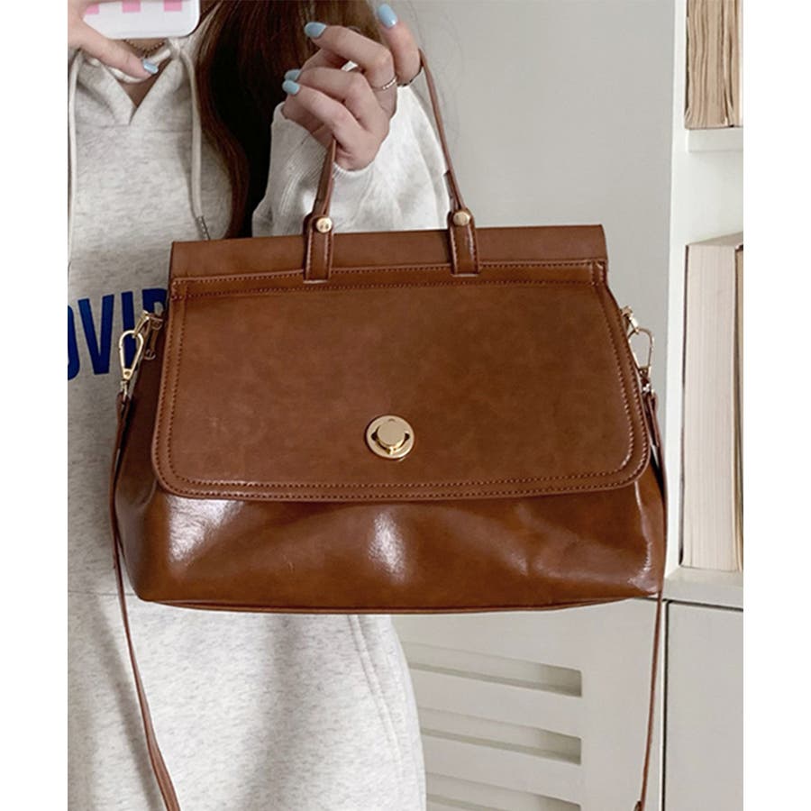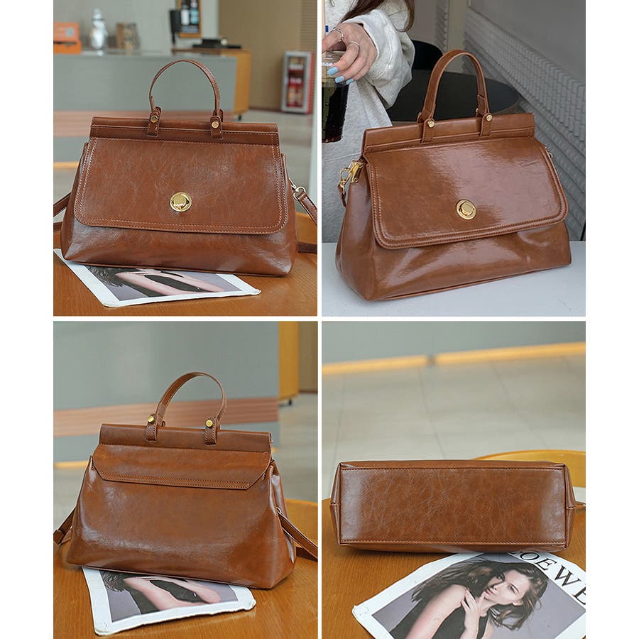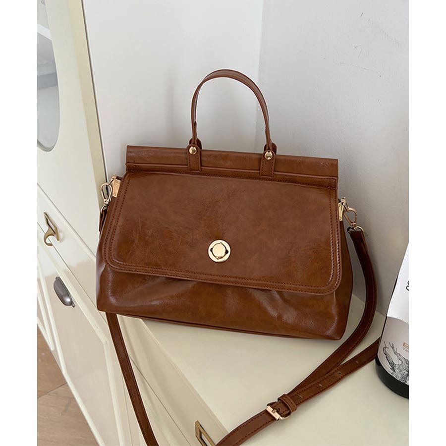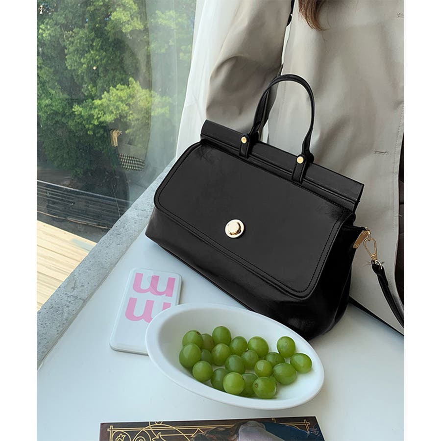 艶やかなフェイクレザーを使用、重厚感と高級感が溢れるショルダー付きトートバッグ