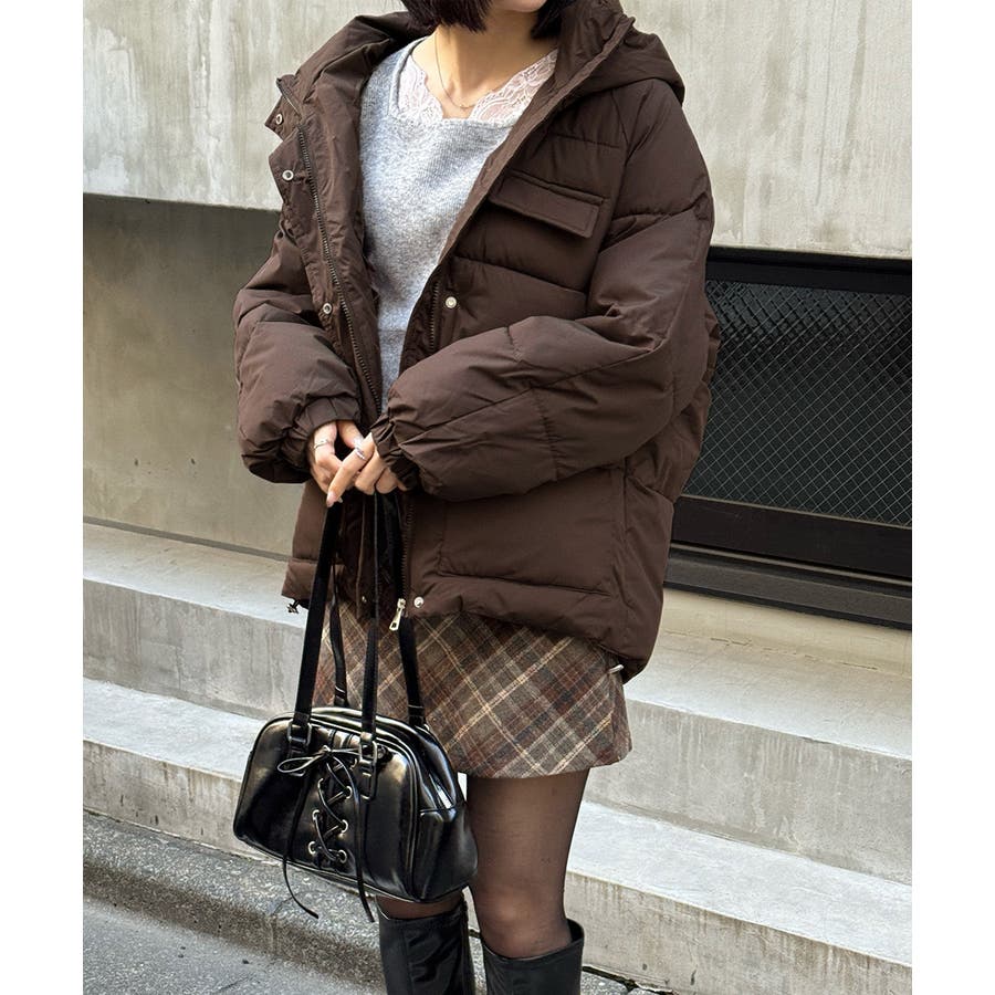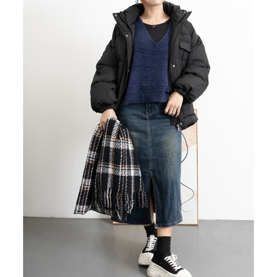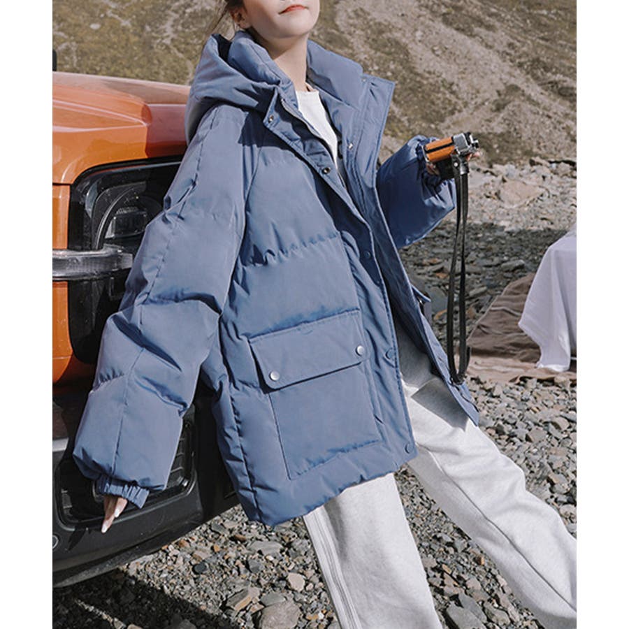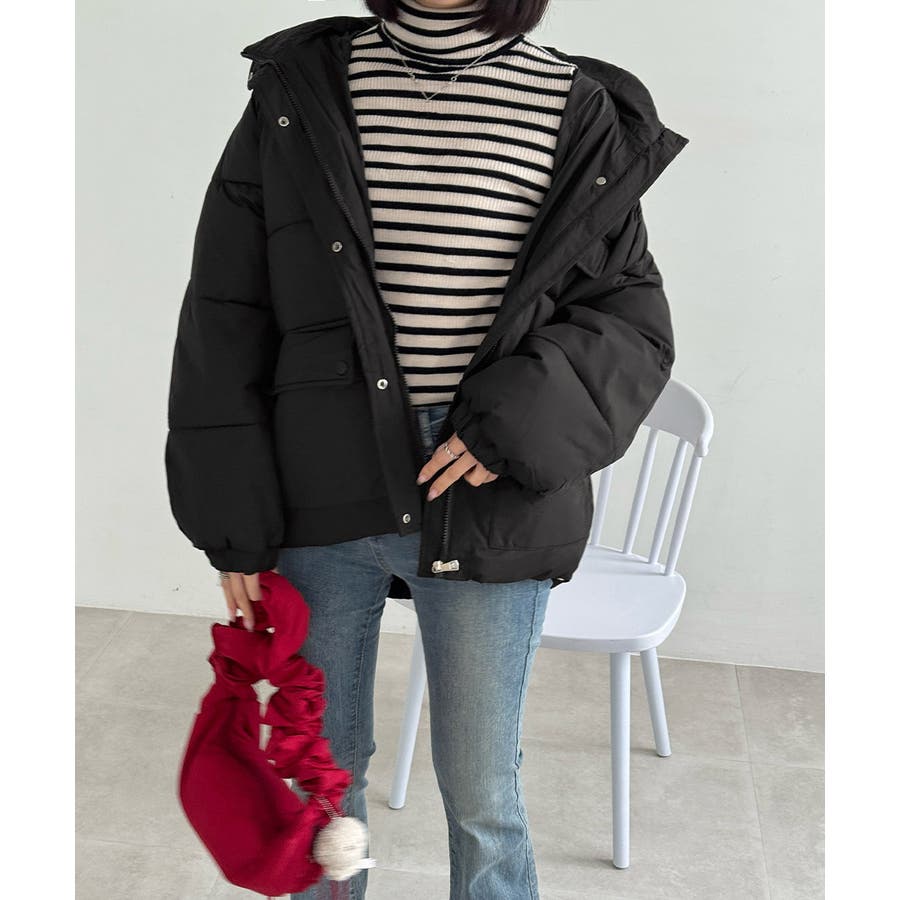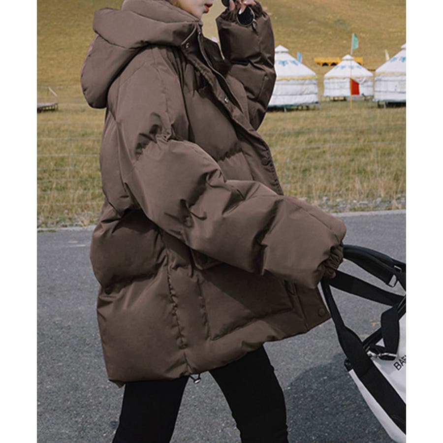 寒い季節にぴったりの、ミディアム丈中綿ダウンコートです。