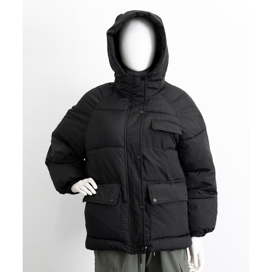 フード中綿コートフェイクダウンジャケット
