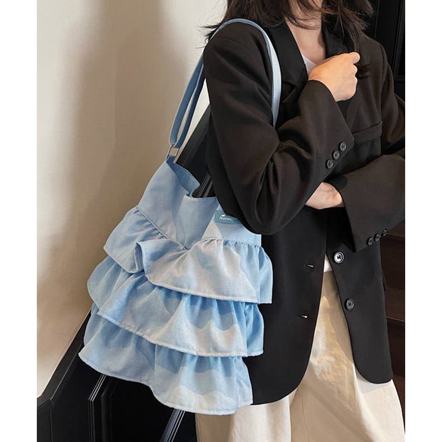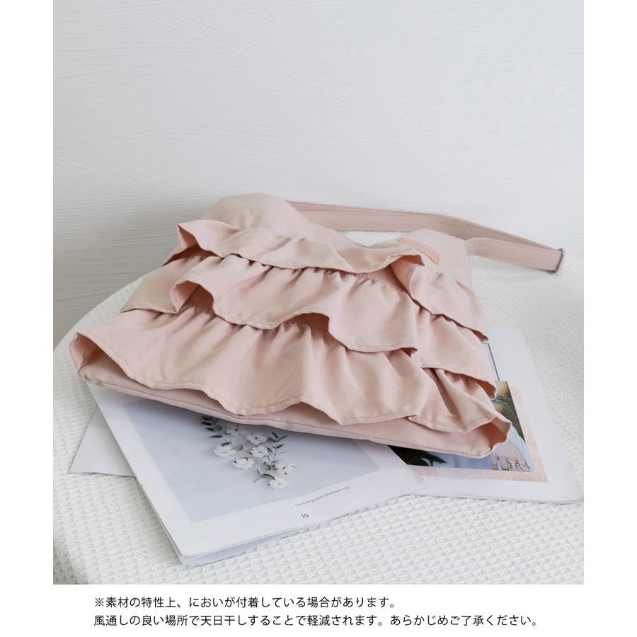 多層のフリルデザインがフェミニンな印象のショルダーバッグ。