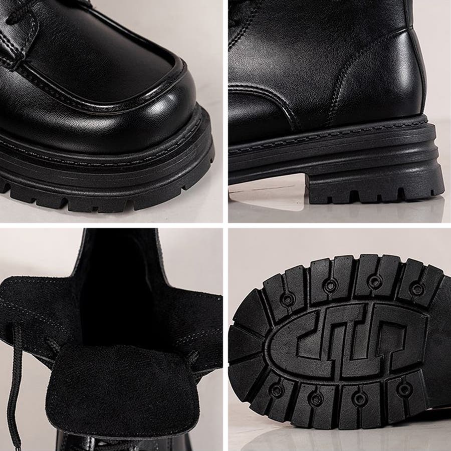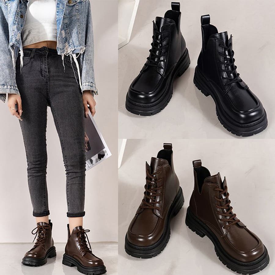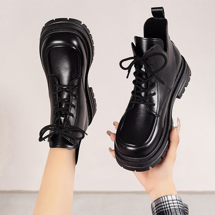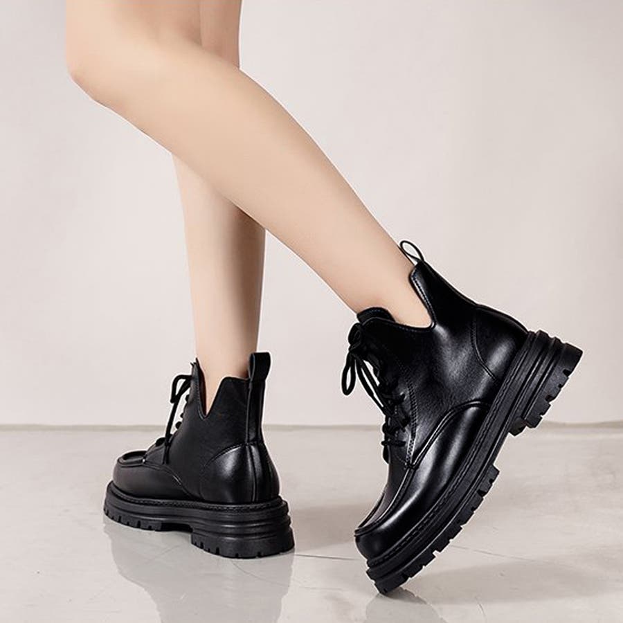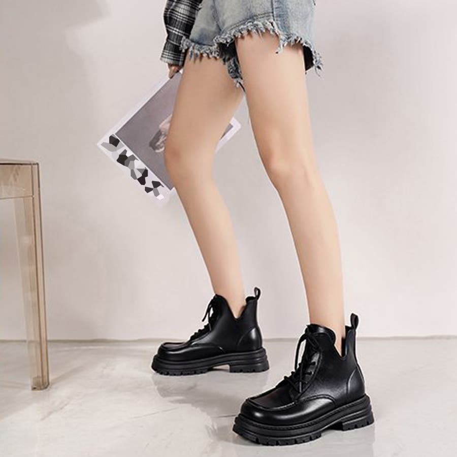 厚底ブーツ韓国 編み上げシューズ美脚脚長