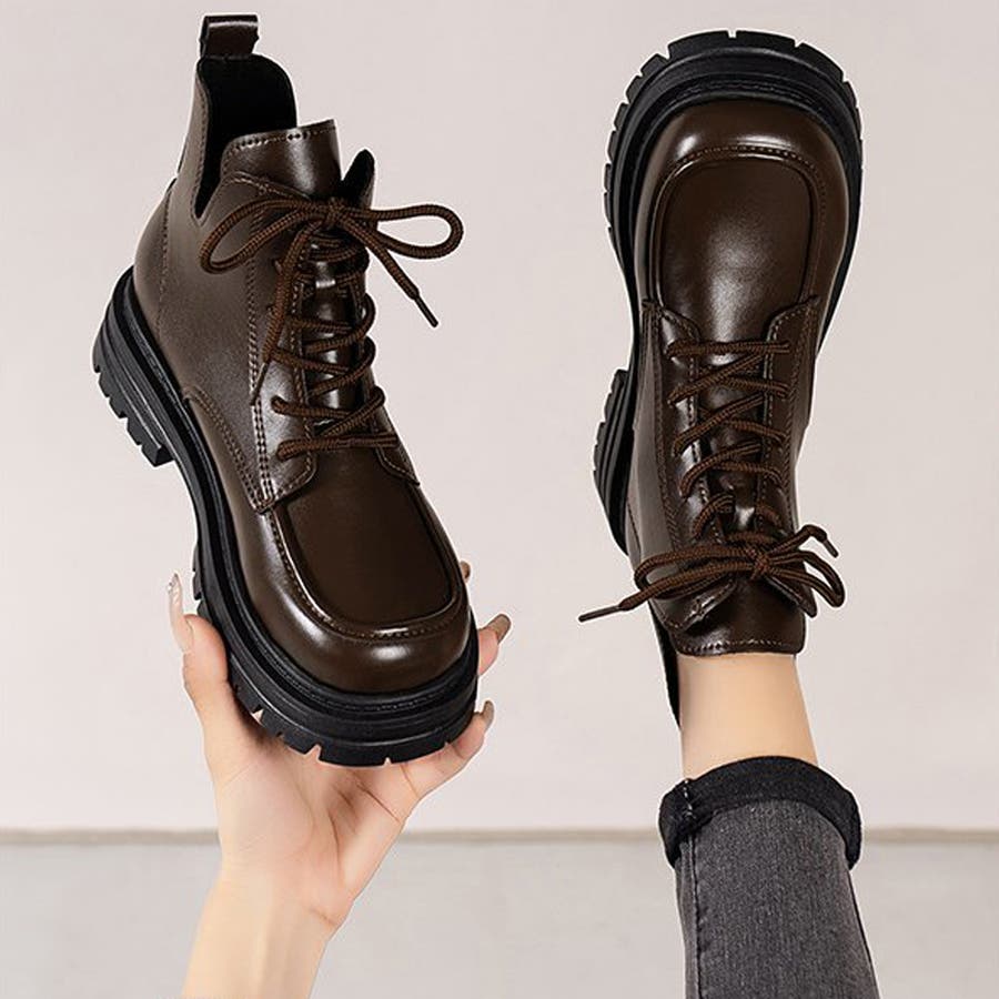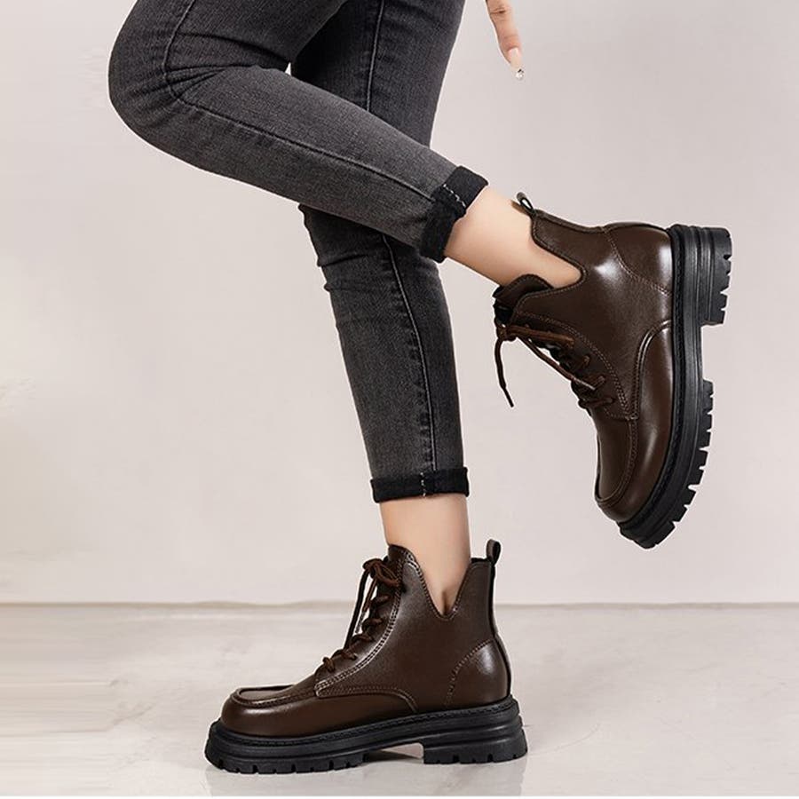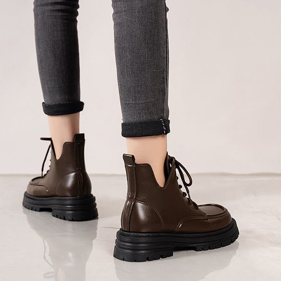ラウンドトゥお洒落 マニッシュシューズ ローヒールブーツ女