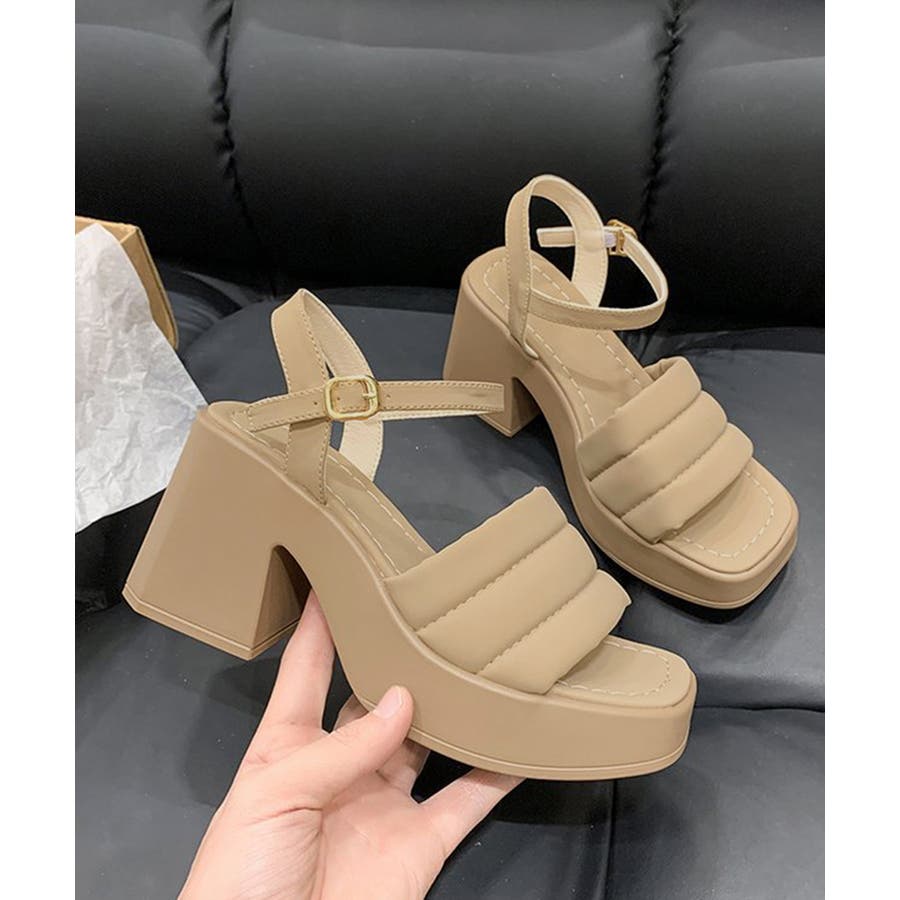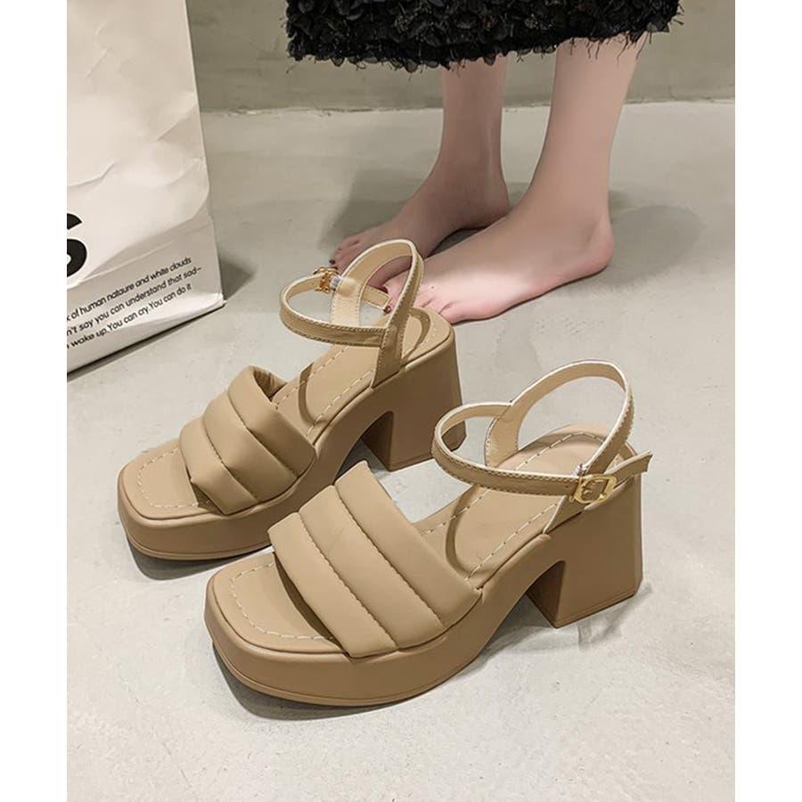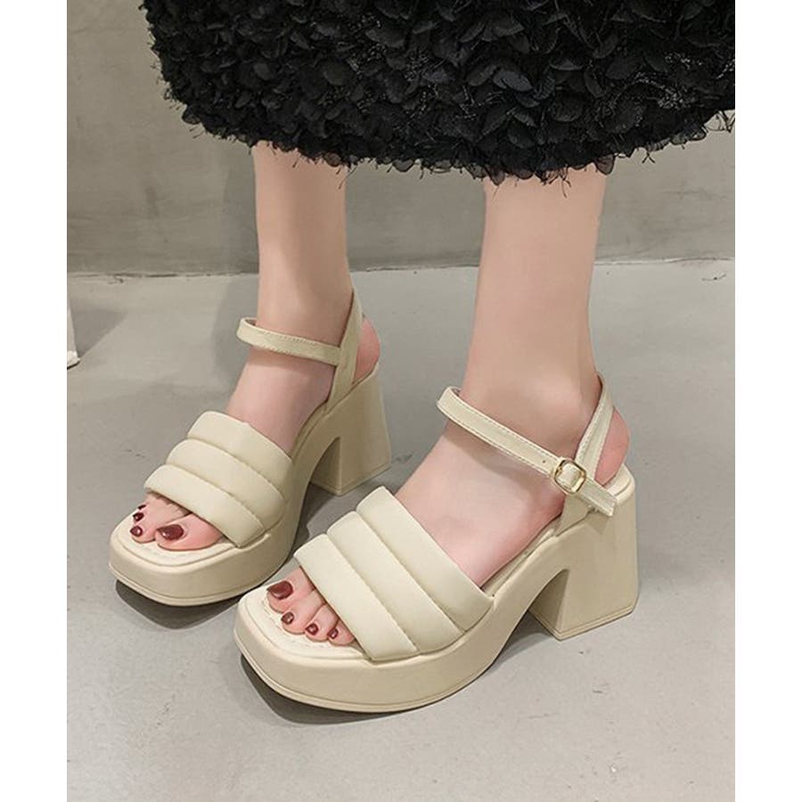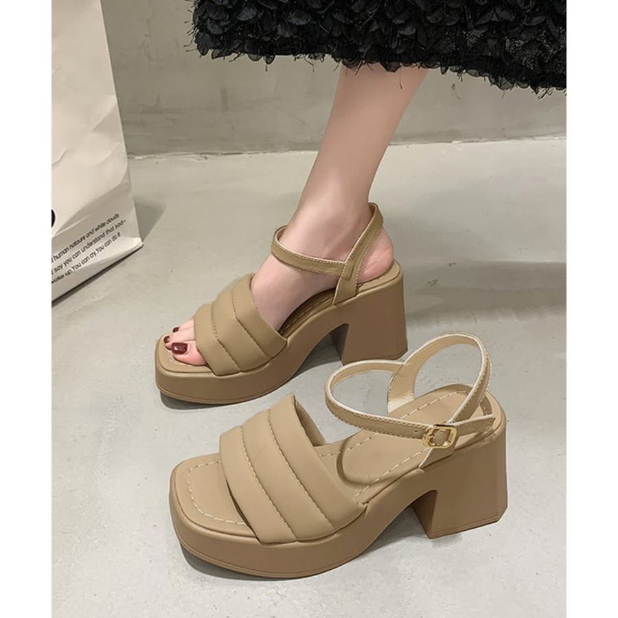 カジュアルはもちろん、きれいめなコーディネートにも馴染むシンプルなスクエアトゥハイヒールサンダル